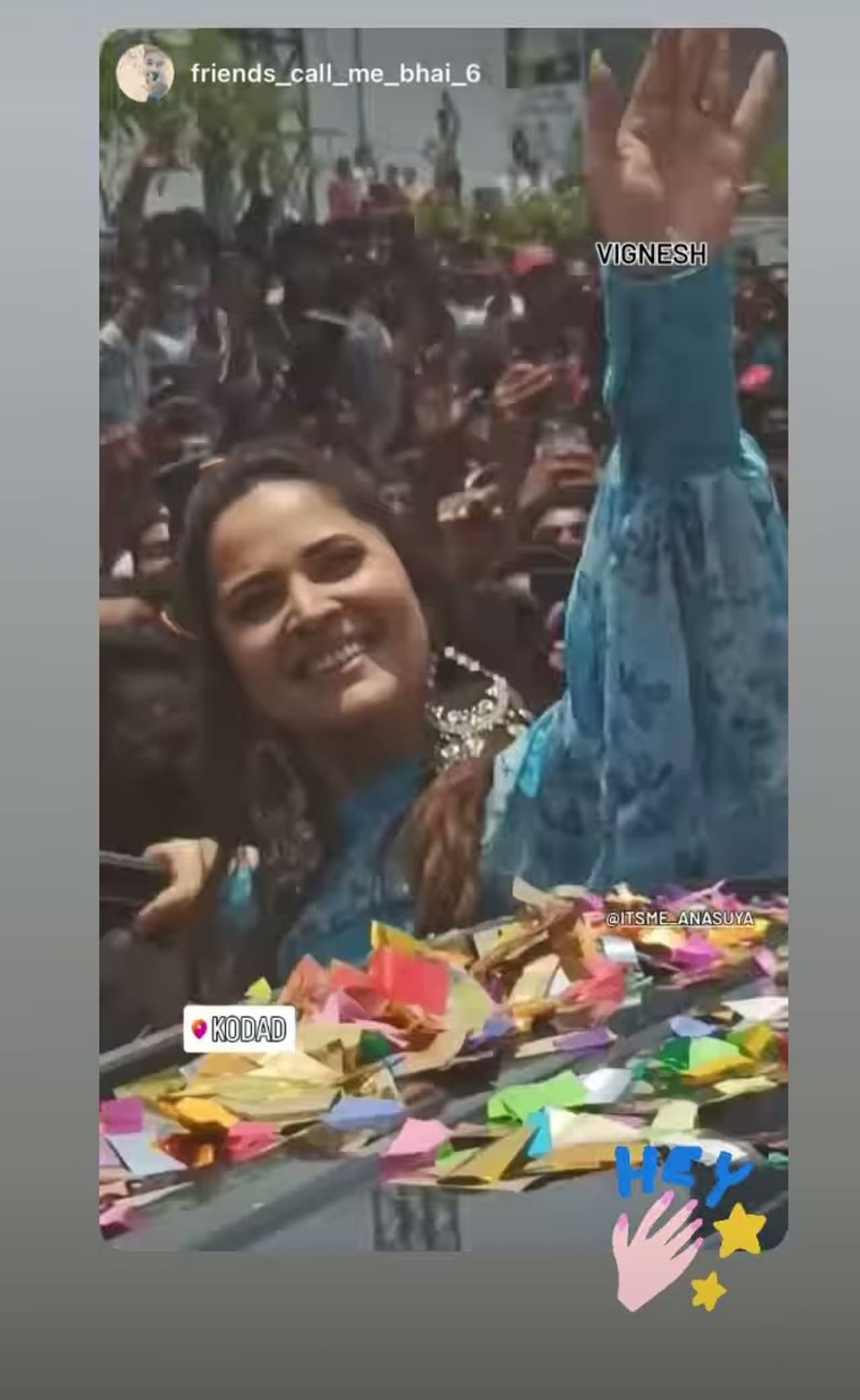 అనసూయ కెరీర్ పీక్స్ లో ఉంది. ఆమె వరుస ఆఫర్స్ తో దూసుకుపోతున్నారు. అలాగే ప్రమోషన్స్ ద్వారా భారీగా ఆర్జిస్తున్నారు. తాజాగా అనసూయ కోదాడ వెళ్లినట్లు సమాచారం. అక్కడ ఓ షాప్ ఓపెనింగ్ లో ఆమె పాల్గొన్నారు. అనసూయ రాకను తెలుసుకున్న యువత పెద్ద ఎత్తున అక్కడకు చేరుకున్నారు. అనసూయ కారును చుట్టుముట్టారు. సెక్యూరిటీ మధ్య ఆమెను వేదికపైకి తీసుకెళ్లారు. ఇక అనసూయ మాట్లాడుతుంటే జనాలు ఈలలు వేస్తూ గోల చేశారు. ఉత్సాహం ప్రదర్శించారు.