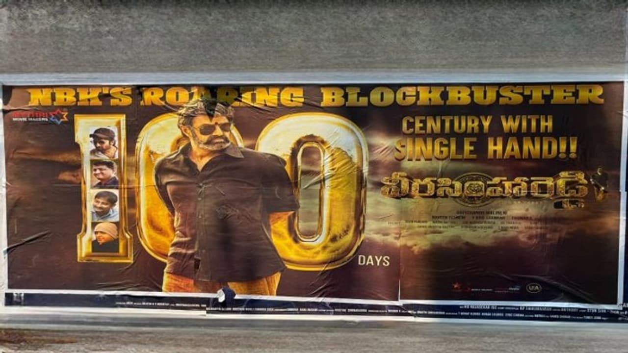 మెగాస్టార్ చిరంజీవి నటించిన వాల్తేరు వీరయ్య, నటసింహం బాలయ్య నటించిన వీరసింహారెడ్డిలను భారీసినిమాల నిర్మాణ సంస్థ మైత్రీమూవీ మేకర్స్ వారు ఒకసారి చేసారు.సంక్రాంతి కోసమే పందెం పుంజుల్లా రెడీచేసిన ఈ సినిమాలను ఒకరోజు తేడాలో రెండింటినీ రిలీజ్ చేయటం అప్పుడు హాట్ టాపిక్. జనవరి 12 న బాలయ్య వీరసింహారెడ్డి, 13న చిరు నటించిన వీల్తేరు వీరయ్య లను రిలీజ్ చేసింది మైత్రీనిర్మాణ సంస్థ. రెండు సినిమాలు ఒకదానికొకటి పోటీ పడుతూ విజయం సాధించాయి. కలెక్షన్స్ కురిపించాయి. ఇద్దరు ఫ్యాన్స్ హ్యాపీ. మైత్రీ మూవీస్ మరీ హ్యాపీ. అయితే ఇప్పుడు వంద రోజులు పంక్షన్ ని వీరసింహా రెడ్డి టీమ్ జరుపుతోంది. ఈ క్రమంలో వేసిన పోస్టర్ ఇప్పుడు అంతటా చర్చనీయాంశంగా మారింది. సెంచరీ విత్ సింగిల్ హ్యాండ్ అంటూ పోస్టర్ వేసారు.