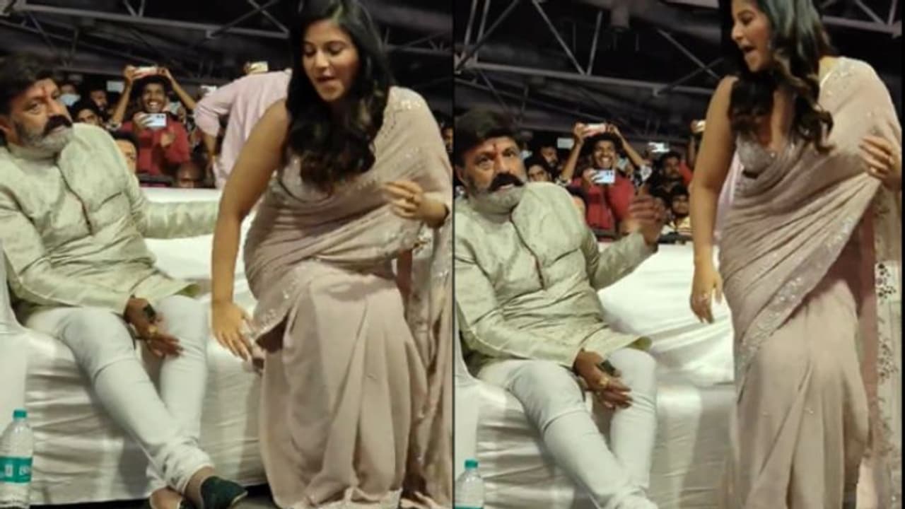 ఈ క్రమంలో బాలకృష్ణ మరోసారి దొరికిపోయాడు. అంజలిని వెనకాల నుంచి కొట్టిన వీడియో ఇప్పుడు వైరల్ అవుతుంది. అదే ఈవెంట్లో అంజలిని హీరో విశ్వక్ సేన్ స్టేజ్పైకి పిలిచాడు. ఆ సమయంలో అంజలి, బాలకృష్ణ ఒకే సీట్లో కూర్చున్నారు. అంజలిని పిలవగానే ఆమె పైకి లేచే క్రమంలో బాలయ్య తన లెఫ్ట్ హ్యాండ్గా ఆమె వెనకాల భాగంలో టచ్ చేశాడు. ఆ సమయంలో కూడా అంజలి స్మైల్ ఫేస్తోనే వెళ్లిపోయింది. ఆ సమయలో దాన్ని ఎవరూ పట్టించుకోలేదు, కానీ ఇప్పుడు వైరల్గా మార్చేస్తున్నారు.