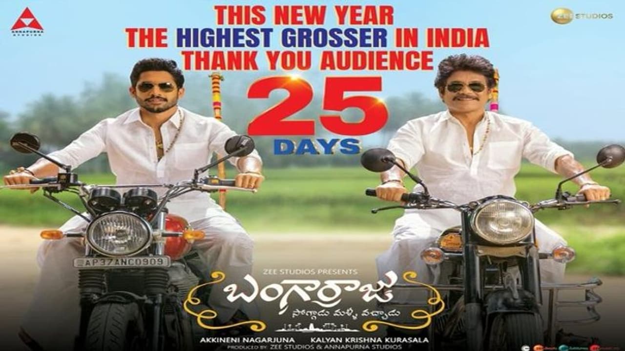ఫస్ట్ షోతోనే సూపర్ హిట్ టాక్ తెచ్చుకున్న బంగార్రాజు (Bangarraju).. థియేటర్లకు సంక్రాంతి సంబరాలు తీసుకొచ్చింది.ఈ సినిమా తెలుగు రాష్ట్రాలతో పాటు, ఓవర్సీస్ లోను భారీ వసూళ్లను రాబట్టింది. సంక్రాంతి బరిలోకి దిగిన సినిమాల్లో విన్నర్ గా నిలిచింది. ఇక ఈ మూవీ రిలీజ్ అయ్యి 25 రోజులను పూర్తిచేసుకుంది. ఈ సందర్భంగా సిల్వర్ జూబ్లీ జోష్ లో ఉన్నారు బంగార్రాజు (Bangarraju) టీమ్. మూవీని ఇంత సక్సెస్ చేసిన ఆడియన్స్ కి థ్యాంక్స్ చెబుతూ టీమ్ స్పెషల్ పోస్టర్ ను కూడా రిలీజ్ చేసింది.