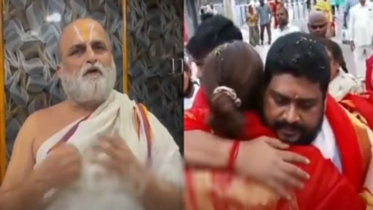 `ఆదిపురుష్` దర్శకుడు ఔం రౌత్, హీరోయిన్ కృతి సనన్.. వివాదంలో ఇరుక్కున్న విషయం తెలిసిందే. నిన్న(బుధవారం) ఉదయం తిరుమల శ్రీవారిని దర్శించుకున్న అనంతరం వెళ్తూ ఈ ఇద్దరు హగ్ చేసుకున్నారు. కృతికి ముద్దు పెట్టాడు దర్శకుడు ఓం రౌత్. ఇది సంచలనంగా మారింది. పెద్ద వివాదంగా మారిన నేపథ్యంలో తాజాగా చిలుకూరు బాలాజీ టెంపుల్ ప్రధాన అర్చకులు సీఎస్ రంగరాజన్ ఆగ్రహం వ్యక్తం చేశారు. తిరుమల కొండపై ఇలాంటి పనులు సమ్మతం కాదని ఆయన మండిపడ్డారు.