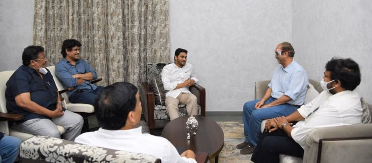 తెలుగు సినీ పరిశ్రమ అభివృద్ధితో పాటు ఇతర విషయాలను చర్చించేందుకు సినీ పెద్దలు వైఎస్ జగన్ మోహన్ రెడ్డిని కలిశారు. మెగాస్టార్ చిరంజీవితో పాటు నాగార్జున, రాజమౌళి, దిల్ రాజు, సురేష్ బాబు, సీ కళ్యాణ్, దామోదర్ ప్రసాద్లు జగన్ మోహన్రెడ్డితో భేటీ అయిన వారిలో ఉన్నారు. ఈ చర్చల్లో భాగంగా ఇప్పటికే షూటింగ్లకు అనుమతి ఇచ్చిన నేపథ్యంలో జగన్కు చిత్ర పరిశ్రమ తరుపున కృతజ్ఞతలు తెలియజేశారు. హైదరాబాద్ నుంచి ప్రత్యేక విమానంలో బయలుదేరిన సినీ ప్రముఖులు ఈ రోజు మధ్యాహ్నానికి గన్నవరం చేరుకున్నారు. అక్కడ కొద్ది సేపు విశ్రాంతి తీసుకున్న తరువాత 2 గంటల 45 నిమిషాల సమయంలో తాడేపల్లిలో సీఎం జగన్ నివాసానికి చేరుకున్నారు.