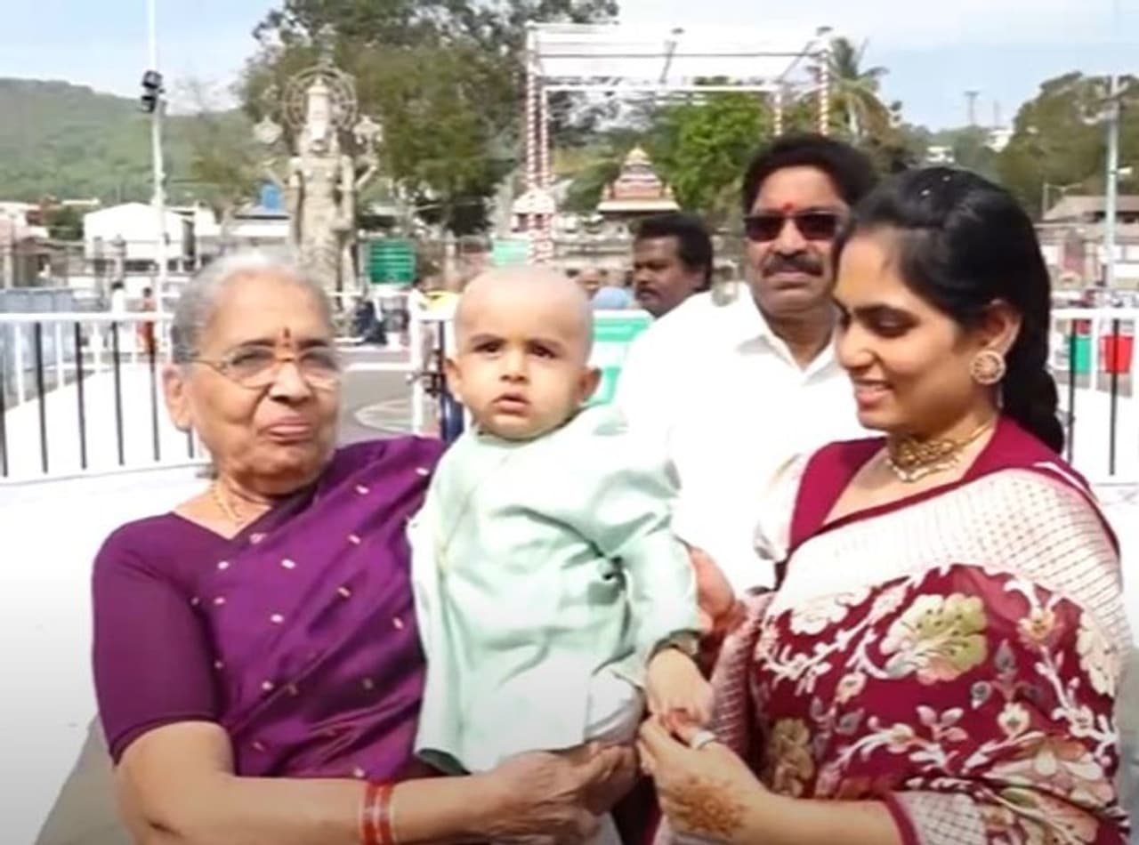 అయితే ఆలయం బయట దిల్ రాజు కొడుకు అన్వై రెడ్డి ప్రత్యేక ఆకర్షణగా నిలిచాడు. అన్వై రెడ్డి క్యూట్ లుక్స్ ప్రతి ఒక్కరిని ఆకర్షిస్తున్నాయి. ఆ చిన్న ఫోటోలు వీడియోలు సోషల్ మీడియాలో వైరల్ గా మారాయి.