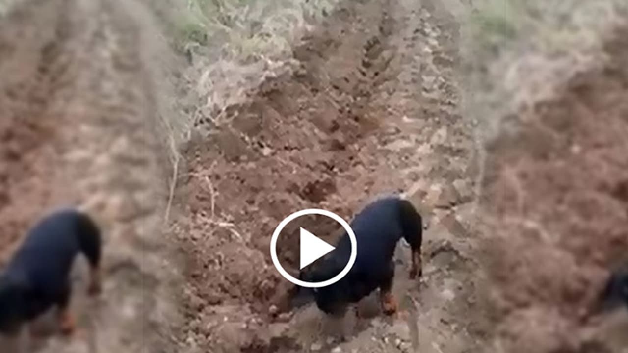 సేద్యం చేస్తున్న కుక్క పిల్ల చోద్యం (వీడియో)