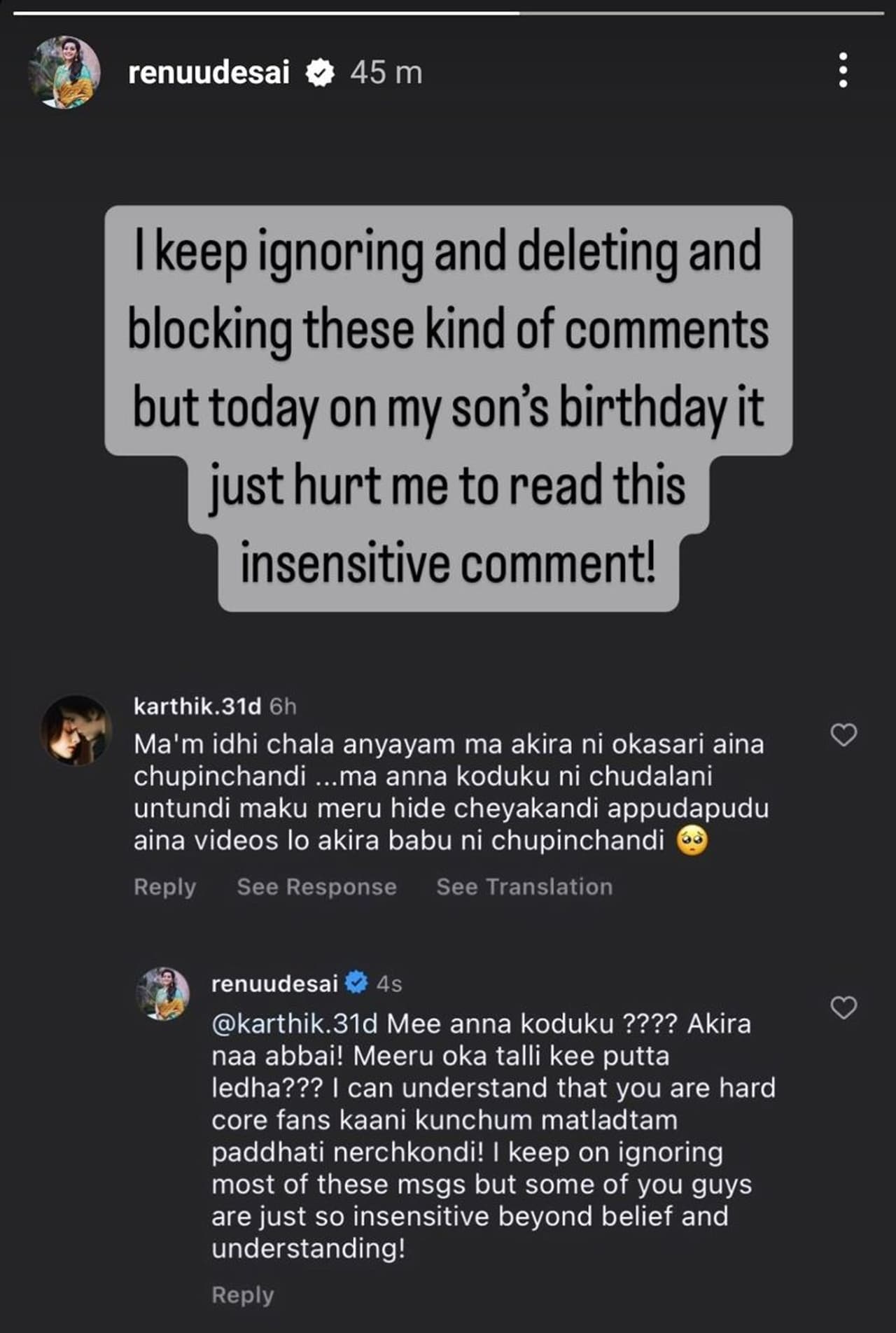 'అన్న కొడుకా??? అకీరా నా కొడుకు. నువ్వు ఒక తల్లికే పుట్టావా?' అని రేణు ఫైర్ అయ్యారు. మా వాడు తప్పేం అన్నాడంటూ అతనికి మద్దతుగా పవన్ ఫ్యాన్స్ రేణు మీద దాడికి దిగారు. ఏ పొలిటికల్ పార్టీకో అమ్ముడుబోయి ఉంటావు. ఎన్నికలు వస్తున్నాయి కదా మళ్ళీ స్టార్ట్ చేశావంటూ... రేణు మీద వ్యక్తిగత దూషణలు చేస్తున్నారు. రేణు దేశాయ్ కి మరింత చిర్రెత్తుకొచ్చింది. నేను తలచుకుంటే మీ అన్న జైలుకి వెళ్ళేవాడని పరోక్షంగా తెలియజేసే ఓ వీడియో ఇంస్టాగ్రామ్ లో పెట్టింది.