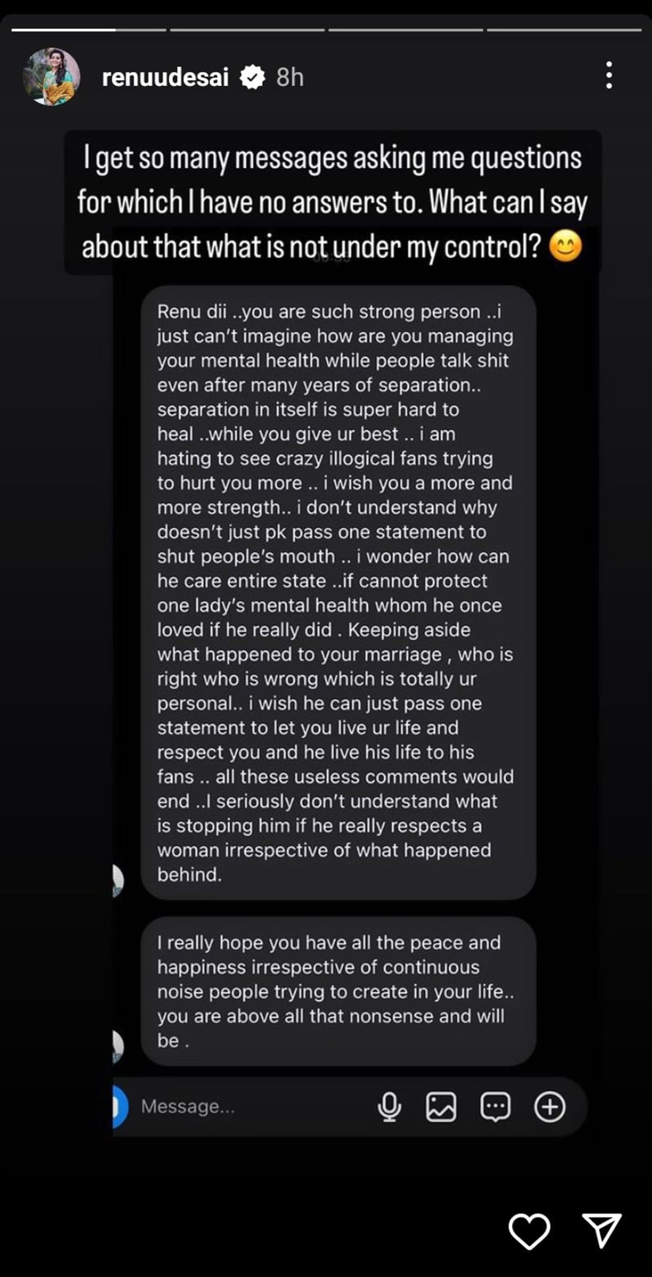 లక్షల అభిమానులను కంట్రోల్ చేయడం కష్టం. అది ఆయనకు కూడా తెలుసు. కాబట్టి పవన్ రేణు దేశాయ్ ని రిక్వెస్ట్ చేసి ఈ వివాదం వదిలేయమని చెబితే బెటర్ అని సోషల్ మీడియాలో కామెంట్స్ వినిపిస్తున్నాయి. లేదంటే ఆయన వ్యతిరేక వర్గాలు రేణు దేశాయ్ తరపున వకాల్తా పుచ్చుకుంటే వివాదం మరింత పెద్దది అవుతుందంటున్నారు. రేణు దేశాయ్-పవన్ కళ్యాణ్ లకు విడాకులు అయినప్పటికీ స్నేహం ఉంది. కాబట్టి ఆయన చెప్తే రేణు వింటారనడంలో సందేహం లేదు. గత ఏడాది కొడుకు అకీరా గ్రాడ్యుయేషన్ డే ప్రోగ్రాంలో పవన్-రేణు కలిసి పాల్గొన్నారు.