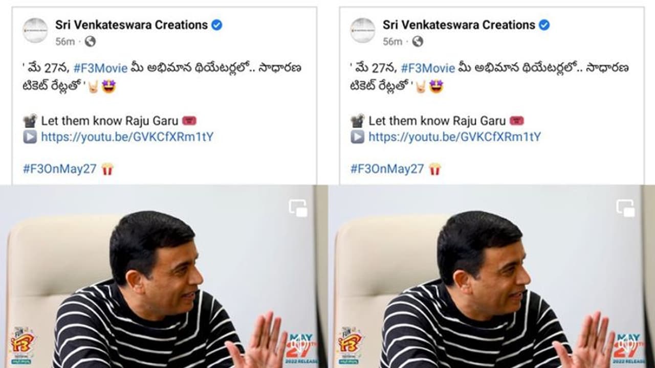 అధిక ధరల కారణంగా జరుగుతున్న నష్టాన్ని గమనించిన ఎఫ్3 (F3 Movie) మూవీ నిర్మాత దిల్ రాజు వినూత్న ప్రచారం చేస్తున్నారు. సాధారణ ధరలకే మీ అభిమాన థియేటర్స్ లో ఎఫ్ 3 మూవీ చూసి ఎంజాయ్ చేయండి అంటూ ప్రకటించారు. ప్రేక్షకుల్లో పెరిగిన ధరల కారణంగా ఏర్పడిన అసహనం, అనుమానాలు తీర్చేలా ఆయన ప్రచారం ఉంది. కాబట్టి మే 27న విడుదల కావాల్సిన ఎఫ్3 మూవీ టికెట్స్ రేట్లు ప్రభుత్వం నిర్ణయించిన ప్రకారం ఉంటాయి. ఏపీలో ఓ మోస్తరుగా టికెట్స్ ధరలు ఉండగా తెలంగాణాలో దారుణంగా పెంచారు. అత్యధికంగా రూ. 350 వరకు ధరలు ఉన్నాయి. కాబట్టి ఓ మీడియం రేంజ్ బడ్జెట్ సినిమాకు ఉన్న రేట్లే అధికం, అదనంగా పెంచాల్సిన అవసరం లేదు.