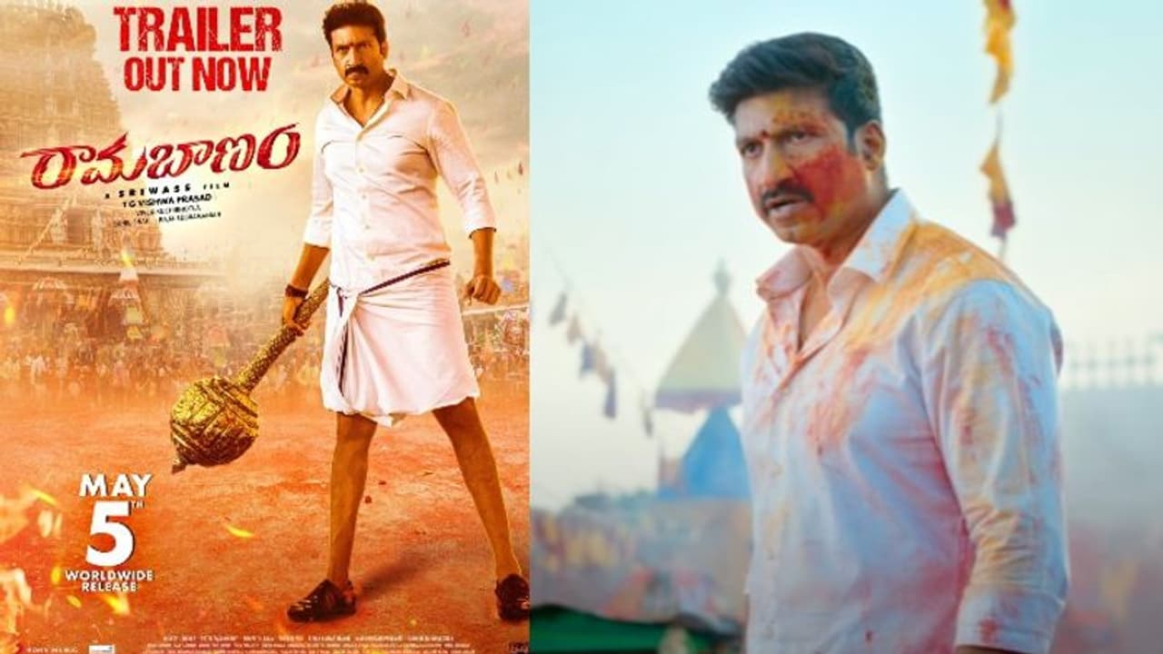తరుణ్ రాజ్ అరోరా విలన్ గా నటిస్తున్నారు. జగపతి బాబు, ఖుష్బూ, నాజర్, శుభలేఖ సుధాకర్ ఇతర కీలక పాత్రల్లో నటించారు. మే 5న ఈ చిత్రం గ్రాండ్ రిలీజ్ కి రెడీ అవుతోంది. ఈ నేపథ్యంలో తాజాగా చిత్ర యూనిట్ రామబాణం థియేట్రికల్ ట్రైలర్ రిలీజ్ చేశారు.