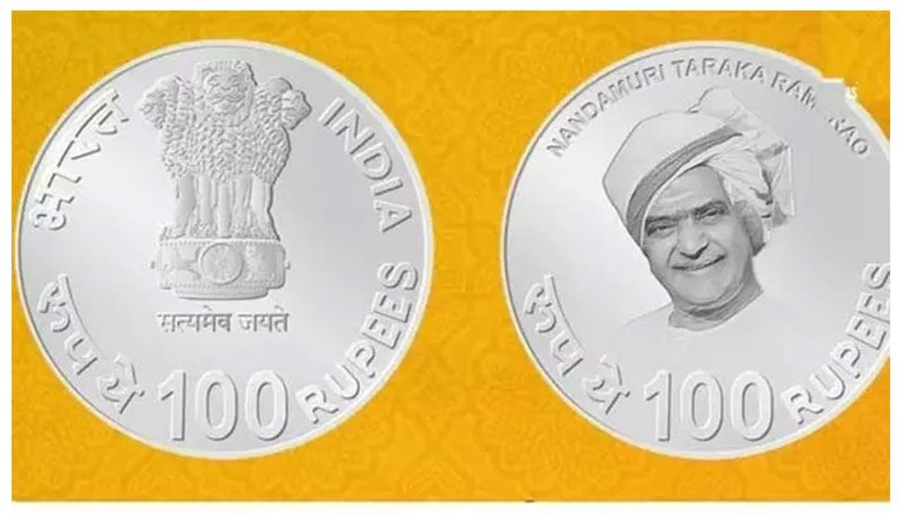 బాలయ్య మాత్రం హాజరవుతున్నట్లు సమాచారం. ఇక ఎన్టీఆర్ వెండి 100 రూపాయల నాణెం పరిశీలిస్తే... 44 మిల్లీ మీటర్లు చుట్టుకొలత కలిగి ఉంటుంది. 50 శాతం వెండి, 40 శాతం రాగి, 5 శాతం నికెల్, 5శాతం జింక్ తో రూపొందించారు. ఒకవైపు మూడు సింహాలతో కూడిన అశోక చక్రం ఉంటుంది. మరోవైపు ఎన్టీఆర్ బొమ్మ ఉంటుంది. ఎన్టీఆర్ శతజయంతి అని హిందీలో రాసి క్రింద 1923-2023 అనే సంవత్సరాలు ముద్రించి ఉంటాయి.