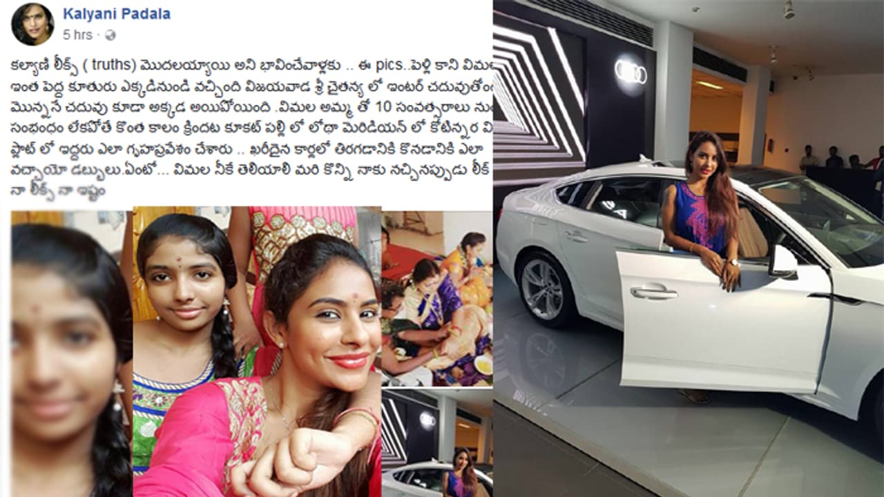 తాజాగా కల్యాణి తన ఫేస్ బుక్ పేజీలో `కల్యాణి లీక్స్( truths) ` పేరుతో ఓ సంచలన పోస్ట్ చేసింది. కొద్ది రోజుల క్రితం ఓ న్యూస్ చానెల్ లైవ్ డిబేట్ లో శ్రీరెడ్డి కరాటే కల్యాణి ల మధ్య తీవ్ర వాగ్వాదం జరిగిన సంగతి తెలిసిందే. ఆ తర్వాత కల్యాణిపై శ్రీరెడ్డి పోలీసులకు ఫిర్యాదు కూడా చేసింది. ఈ నేపథ్యంలో శ్రీరెడ్డిపై కల్యాణి పరోక్షంగా షాకింగ్ కామెంట్స్ చేసింది. విమల అనేపేరుతో శ్రీరెడ్డిని పరోక్షంగా విమర్శిస్తూ సంచలన వ్యాఖ్యలు చేసింది. పెళ్లి కాని విమలకు ఇంటర్ పూర్తి చేసుకున్న కూతురు ఉందని 10 సంవత్సరాలుగా తన తల్లిదండ్రులతో సంబంధాలు లేవన్న విమల....వాళ్ల అమ్మతో కలిసి ఫ్లాట్ గృహ ప్రవేశానికి వచ్చిందని కల్యాణి పోస్ట్ చేసింది. ``కల్యాణి లీక్స్ మొదలయ్యాయి అని భావించేవాళ్లకు .. ఈ pics..పెళ్లి కాని విమలకు ఇంత పెద్ద కూతురు ఎక్కడినుండి వచ్చింది విజయవాడ శ్రీ చైతన్య లో ఇంటర్ చదువుతోంది మొన్ననే చదువు కూడా అక్కడ అయిపోయింది .విమల అమ్మ తో 10 సంవత్సరాలు నుండి సంభంధం లేకపోతే కొంత కాలం క్రిందట కూకట్ పల్లి లో లోథా మెరిడియన్ లో కోటిన్నర విలువగల ప్లాట్ లో ఇద్దరు ఎలా గృహప్రవేశం చేశారు .. ఖరీదైన కార్లలో తిరగడానికి కొనడానికి ఎలా వచ్చాయో డబ్బులు.ఏంటో... విమల నీకే తెలియాలి మరి కొన్ని నాకు నచ్చినప్పుడు లీక్ చేస్తా.... నా లీక్స్ నా ఇష్టం``అంటూ కల్యాణి పోస్ట్ చేసింది. మరి ఈ పోస్ట్ పై శ్రీరెడ్డి రియాక్షన్ ఎలా ఉండబోతోందన్నది ఆసక్తికరంగా మారింది.
