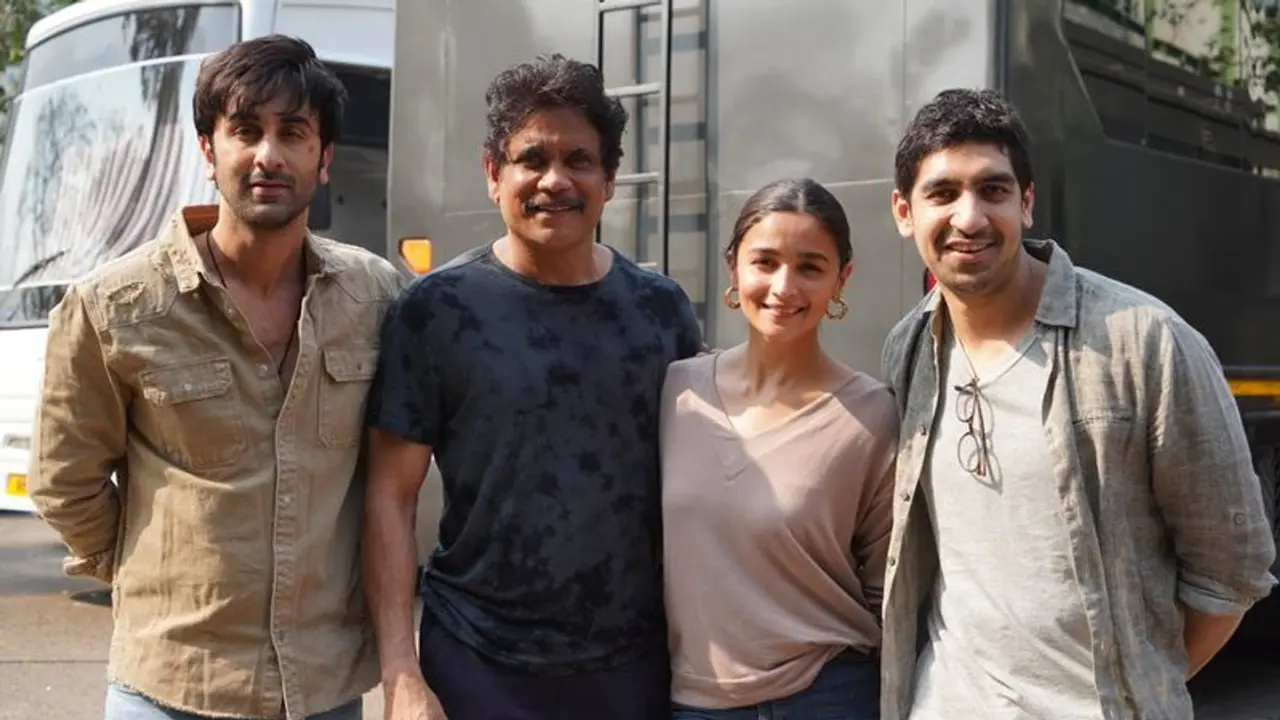 బ్రహ్మస్త్ర మూవీ టీం తో నాగార్జున ఫోటోలు దిగారు. అలియా భట్, రన్బీర్ కపూర్ దర్శకుడు అయాన్ ముఖర్జీలతో నాగార్జున ఫోటోలకు పోజిచ్చారు. అమితాబ్, నాగార్జున వంటి స్టార్ క్యాస్ట్ నటిస్తున్న ఈ చిత్రంలో రణబీర్ కపూర్, డ్రీమ్ గర్ల్ అలీయభట్ హీరో హీరోయిన్స్ గా నటిస్తున్నారు. ప్రస్తుతం ఈ సినిమా షూటింగ్ ప్రస్తుతం బాంబే ఓ భారీ సెట్ లో నడుస్తోంది.