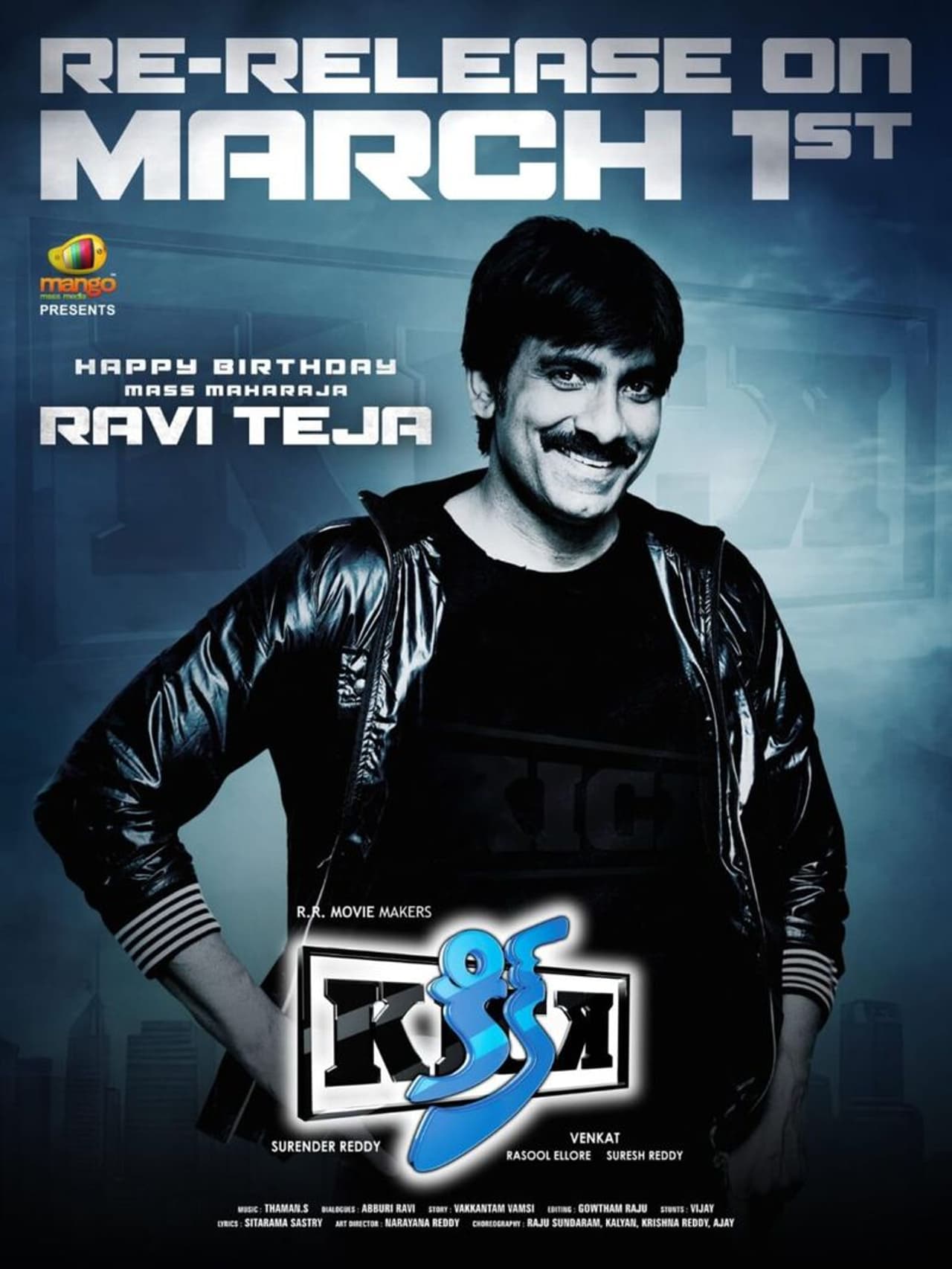 తమ అభిమాన హీరోల పుట్టిన రోజులు, కొన్ని ప్రత్యేకమైన రోజుల్లో సూపర్ హిట్ సినిమాలను రీరిలీజ్ చేస్తున్న విషయం తెలిసిందే. ఇక నిన్న రవితేజ పుట్టిన రోజు జరిగిన విషయం తెలిసిందే. అభిమానులతో పాటు సినీ ప్రముఖులు ఆయనకు బెస్ట్ విషెస్ తెలిపారు. రవితేజ కూడా ‘థ్యాంక్యూ తమ్ముళ్లూ’ అంటూ రిప్లై ఇచ్చారు. ఇక ఆయన పుట్టిన రోజు సెలబ్రేషన్స్ లో భాగంగానే బ్లాక్ బాస్టర్ హిట్ మూవీ ‘కిక్’ను రీరిలీజ్ చేయబోతున్నారు. మార్చి 1న ఈ చిత్రం మరోసారి వెండితెరపై సందడి చేయబోతోంది.