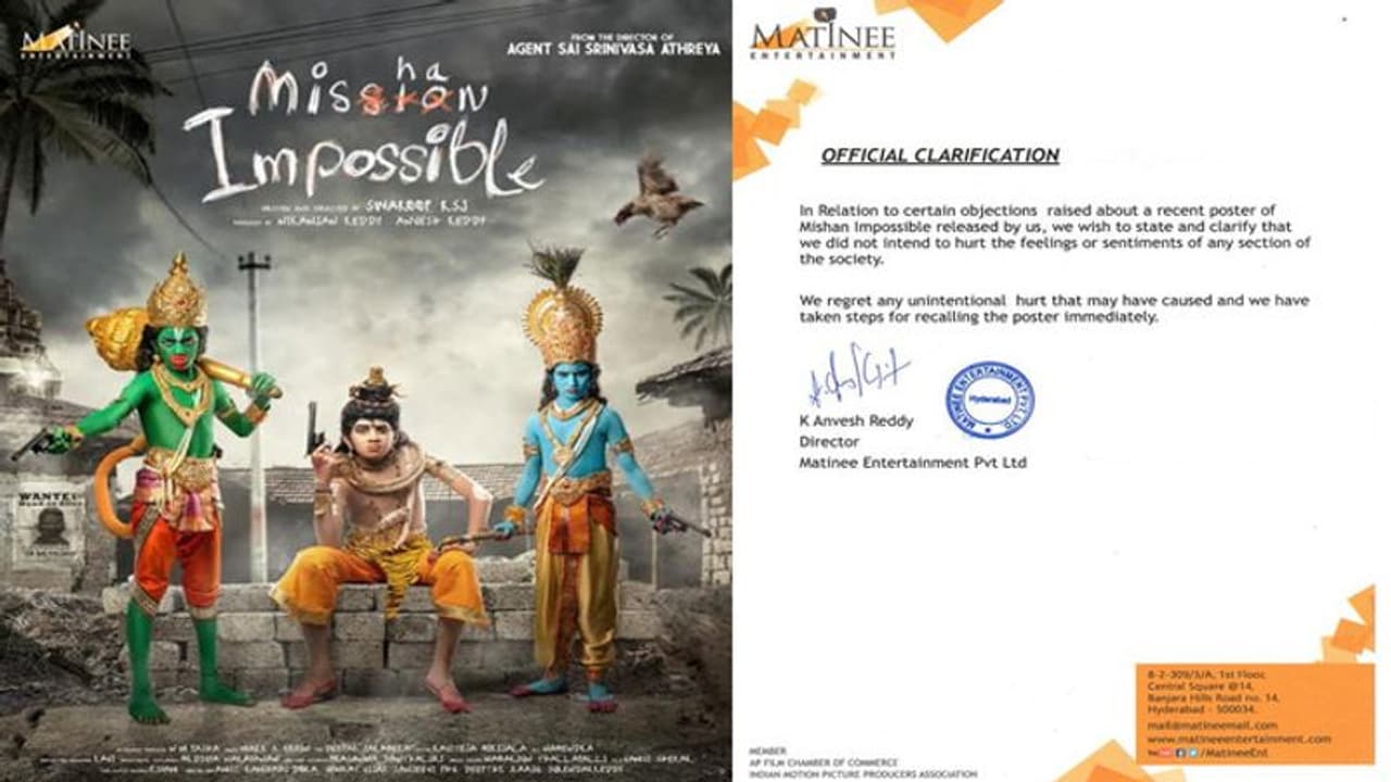 ఈ సందర్భంగా టైటిల్ లోగోతో పాటు ఫస్ట్ లుక్ పోస్టర్ను ఆవిష్కరించారు. ఈ చిత్రానికి 'మిశన్ ఇంపాజిబుల్' అనే ఆసక్తికర టైటిల్ను ప్రకటించారు. ఆ పోస్టర్లో హనుమంతుడు, శివుడు, శ్రీకృష్ణుని వేషధారణలో ఉన్న ముగ్గురు పిల్లల చేతుల్లో గన్స్ ఉన్నాయి. ఐతే, ఈ పోస్టర్ పై వివాదం రేగింది.