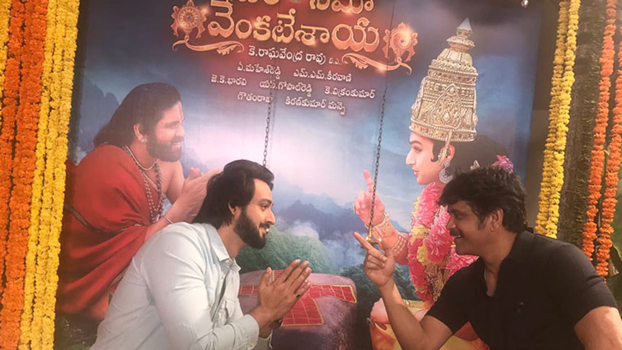 ఓం నమో వెంకటేశాయ ప్రమోషన్ పనులు ప్రారంభం రాఘవేంద్రరావు దర్శకత్వంలో మరోసారి భక్తిరస చిత్రంలో నాగార్జున ఫిబ్రవరి 10న విడుదలకు ముస్తాబవుతున్న ఓంనమో వెంకటేశాయ