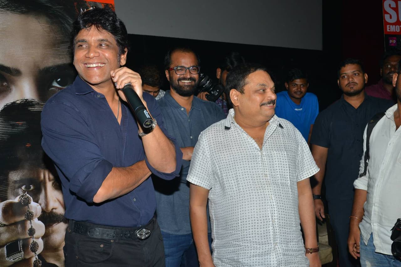 ప్రేక్షకులతో కలిసి "రాజు గారి గది 2 " సినిమా చూసిన నాగార్జున