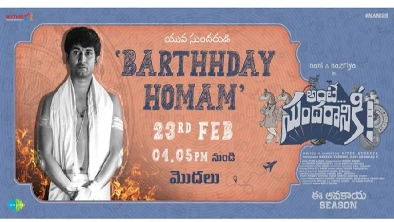 నాని బర్త్ డే బ్లాస్ట్ అదిరిపోయింది. ‘అంటే సుందరానికీ’(Ante Sundaraniki) చిత్రం నుంచి నాని పుట్టిన రోజు సందర్భంగా ‘బర్త్ డే హోమం’ పేరిట మేకర్స్ రిలీజ్ చేసిన గ్లిమ్స్ ఆసక్తిగా ఉంది. ఈ మూవీలో బ్రహ్మిణ్ పాత్రలో నటించనున్న నాని ఫ్రస్టేషన్ మామూలుగా లేదు.