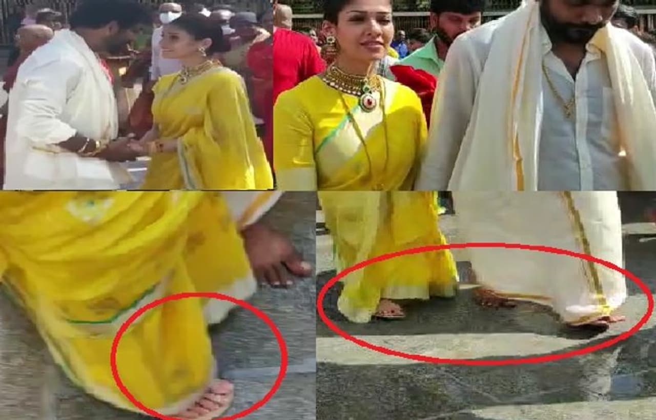 సినీ నటి నయనతార, విఘ్నేశ్ల వివాహం గురువారం ఉదయం చెన్నై సమీపంలోని మహాబలిపురం వడనెమ్మేలిలోని షెరటాన్ గ్రాండ్ హోటల్లో జరిగిన సంగతి తెలిసిందే. వైవాహిక జీవితంలోకి అడుగుపెట్టిన ఈ జంట శ్రీవారిని దర్శించుకున్నారు. ఆ తర్వాత విఘ్నేశ్ దంపతుల ఫొటో షూట్ జరిగింది. శ్రీవారి దర్శనం కోసం వచ్చిన సినీ నటి నయనతార, ఆమె భర్త విఘ్నేష్ తో కలిసి ఆలయ పరిసరాలతోపాటు మాడవీధుల్లో చెప్పులు వేసుకుని తిరగటం జరిగింది. తెలిసి చేసినా తెలియక చేసినా అది ఇప్పుడు పెద్ద వివాదానికి దారి తీస్తోంది. ఫొటో షూట్ లో భాగంగా వీరిద్దరితోపాటు కెమెరామెన్లు, అసిస్టెంట్లు కూడా చెప్పులు, షూలు వేసుకుని తిరిగారు. టీటీడీ నయనతార, విగ్నేశ్ జంటపై, అలాగే ఫోటో షూట్ చేసిన వారిపై కేసు పెట్టే అంశాన్ని పరిశీలిస్తున్నామని పేర్కొంది.
