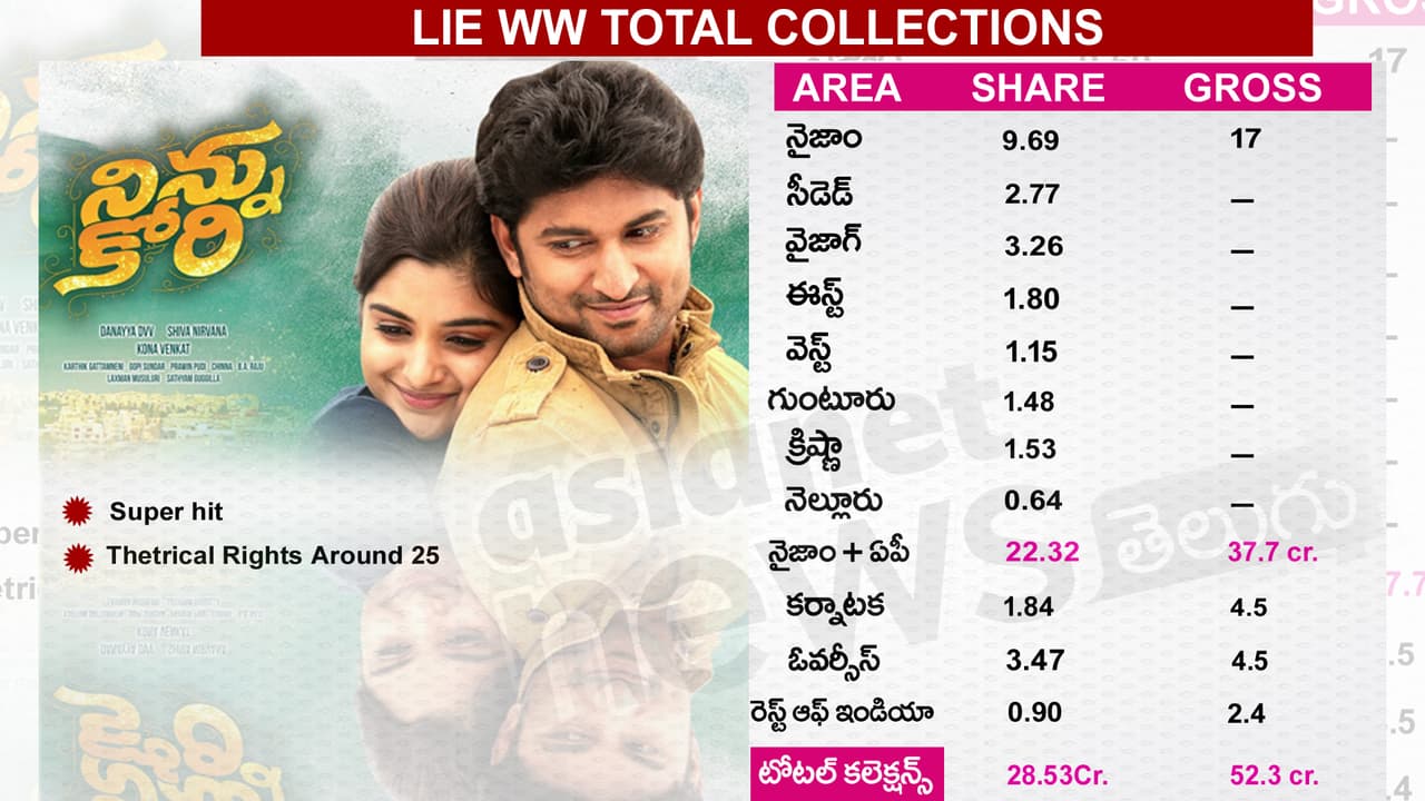 నాని నిన్ను కోరి మూవీ వరల్డ్ వైడ్ కలెక్షన్స్ టోటల్