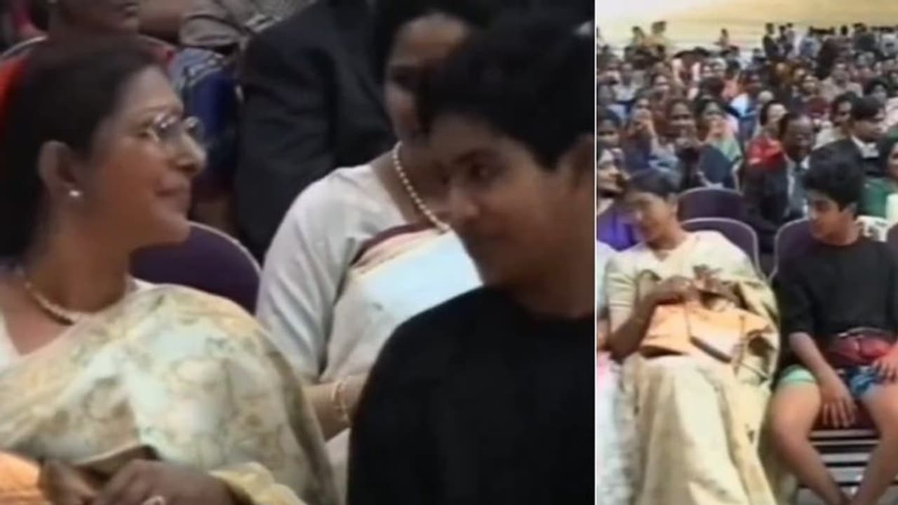 అయితే ఆయన స్టేజ్ ముందు సీనియర్ నటి శారద పక్కన కూర్చోవడం విశేషం. సీనియర్ ఎన్టీఆర్ మనవడు కావడంతో తారక్ని పక్కన కూర్చోబెట్టుకుంది శారద. ఇందులో ఈ ఇద్దరు ముచ్చట్టు పెట్టుకుంటున్నారు. శారద ఏదో అడిగితే అవును అనేలా తలూపాడు ఎన్టీఆర్. చిన్నప్పుడు ఎంతో క్యూట్గా ఉన్నాడు. అయితే ఈ వీడియోలో ఎన్టీఆర్ షాట్లో కనిపించాడు. క్యూట్ ఎక్స్ ప్రెషన్స్ తో ఎంతగానో ఆకట్టుకుంటున్నాడు. ఆయన హవభావాలు, స్పాంటినియస్గా రెస్పాండ్ అయ్యే విధానం, కళ్లు నలుచుకుంటూ కనిపించిన తీరు ఫన్నీగా ఉంది. ఫ్యాన్స్ ని ఆకట్టుకుంటుంది. దీంతో వాళ్లు వైరల్ చేస్తున్నారు.