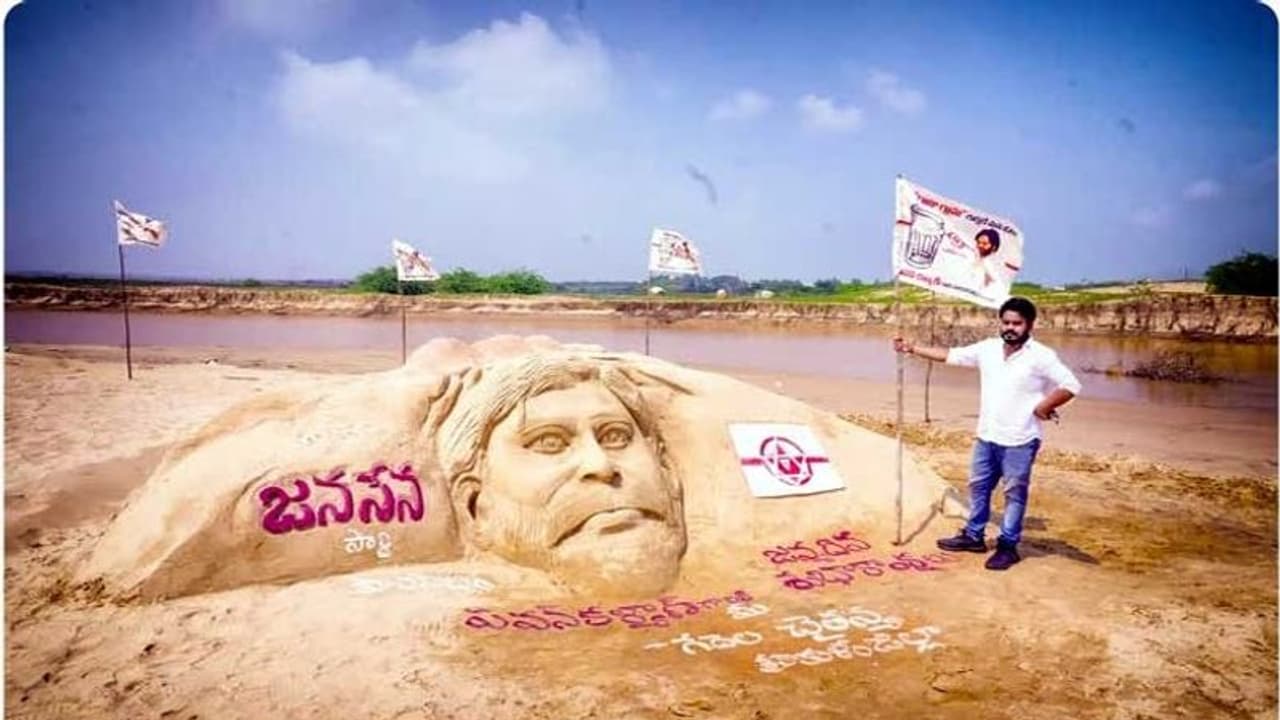 మరోవైపు, పవన్ కొత్త సినిమాలకు సంబంధించి బుధవారం వరుస అప్డేట్లు రానున్నాయి. ఈ నేపథ్యంలో పవన్కు శుభాకాంక్షలు చెబుతూ జనసేన పార్టీ శ్రీకాకుళం జిల్లా పాతపట్నం నియోజకవర్గ నికి చెందిన చైతన్య... పవన్ సైకత శిల్పాన్ని రూపొందించారు. వంశధార నది, సాగరతీరం కలయిక ప్రాంతమైన కళింగపట్నం సముద్ర తీరంలో ఇసుకతో పవన్ రూపాన్ని తీర్చిదిద్దారు. ప్రస్తుతం ఈ సైకత శిల్పం చూపరులను విశేషంగా ఆకట్టుకుంటుంది.