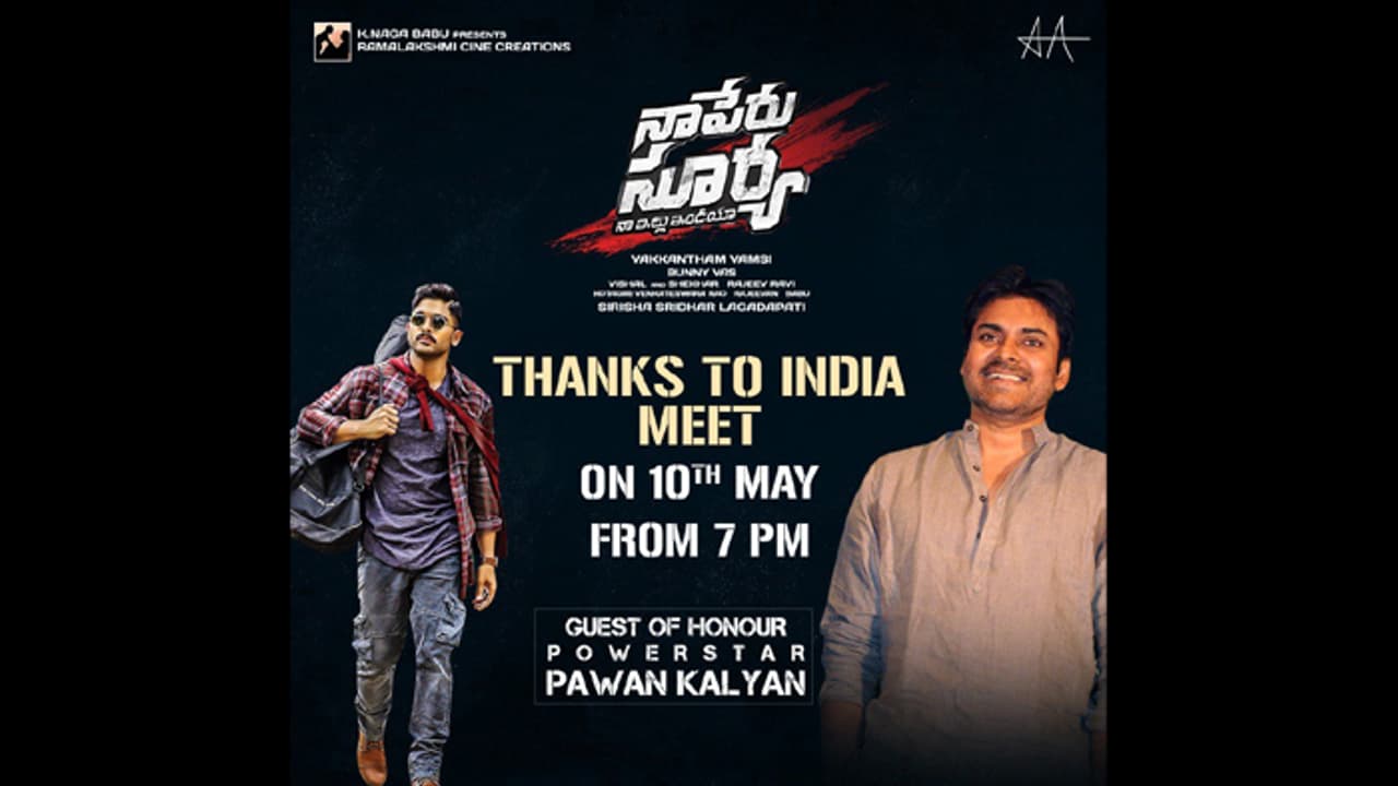 నా పేరు సూర్య బాక్సాఫీస్ దగ్గర కలెక్షన్లు రాక విలవిలలాడిపొతున్నాడు. ఈ సమయంలో కలెక్షన్లు పెరగాలంటే ఏదైన పవర్ రావాల్సిందే. అసలు విషయానికి వెళ్తే ఈ రోజు సాయంత్రం బ్లాస్టింగ్ అనౌన్స్ మెంట్ ఒకటి చేయబోతున్నట్టు సినిమా యూనిట్ ప్రకటించిన విషయం తెలిసిందే. సక్సెస్ మీట్ మే 10న జరగనుంది. అది ఏమై ఉంటుందా అనే సస్పెన్స్ అందరిలోనూ నెలకొని ఉంది. నా పేరు సూర్య టీం చెబుతున్న ఆ బ్లాస్ట్ ఏంటో తెలుసా. పవర్ స్టార్ పవన్ కళ్యాణ్. అవును మే 10న జరగబోయే నా పేరు సూర్య సక్సెస్ మీట్ కి పవన్ కళ్యాణ్ చీఫ్ గెస్ట్ గా రాబోతున్నాడు. పవన్ కళ్యాణ్ ఆ మధ్య రామ్ చరణ్ రంగస్థలం సక్సెస్ మీట్ కు ముఖ్య అతిధిగా రావడం ఎంత ప్లస్ అయ్యిందో చూసాం. ఇప్పుడు నా పేరు సూర్యకు కూడా అంతకు మించి ఇంపాక్ట్ ఉంటుందని టీం ధీమాగా ఉంది.