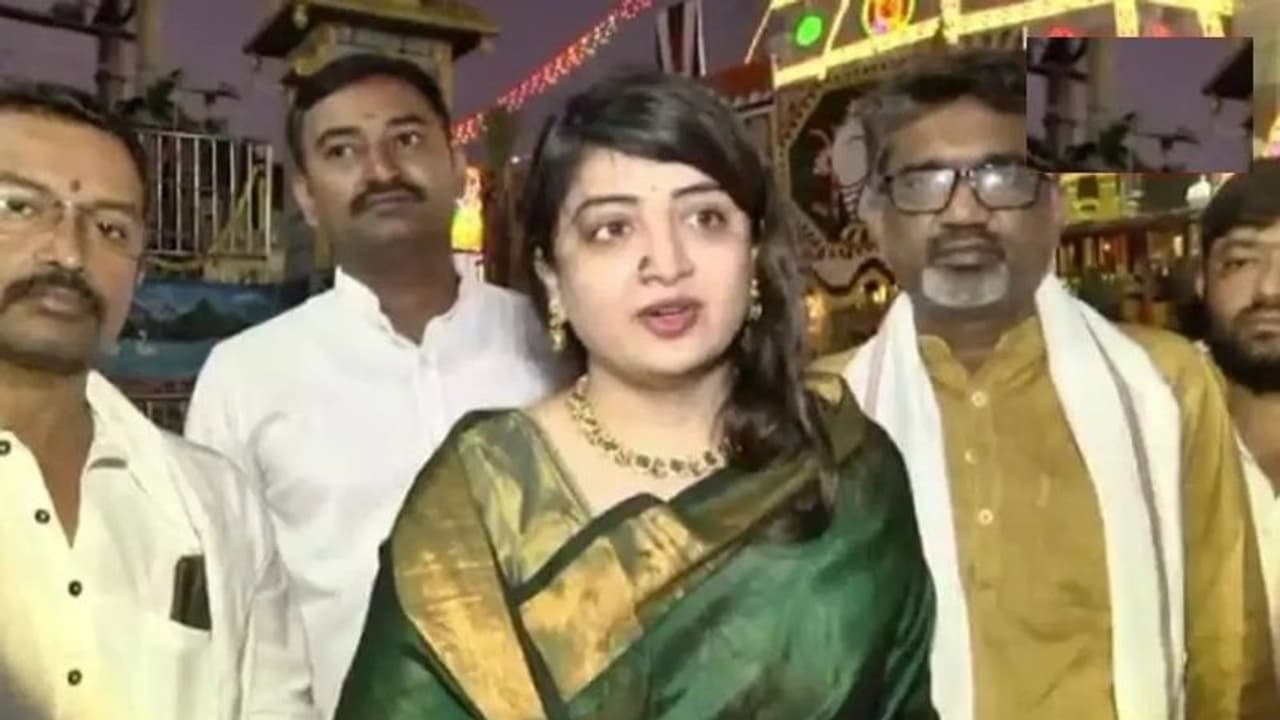 తిరుమలకు చేరుకున్న ఆమె వీఐపీ దర్శన సమయంలో శ్రీవారిని దర్శించుకున్నారు. ఈ సందర్భంగా స్వామి వారికి చేసిన ప్రత్యేక పూజలలో పాల్గొన్నారు. శ్రీవారి దర్శనాంతరం రంగనాయకుల మండపంలో వేదపండితులు వేద ఆశీర్వచం పొందారు. అనంతరం ఆలయ అధికారులు స్వామి వారి వస్త్రంతో ఆమెను సత్కరించి శ్రీవారి తీర్థ ప్రసాదాలను అందజేశారు.