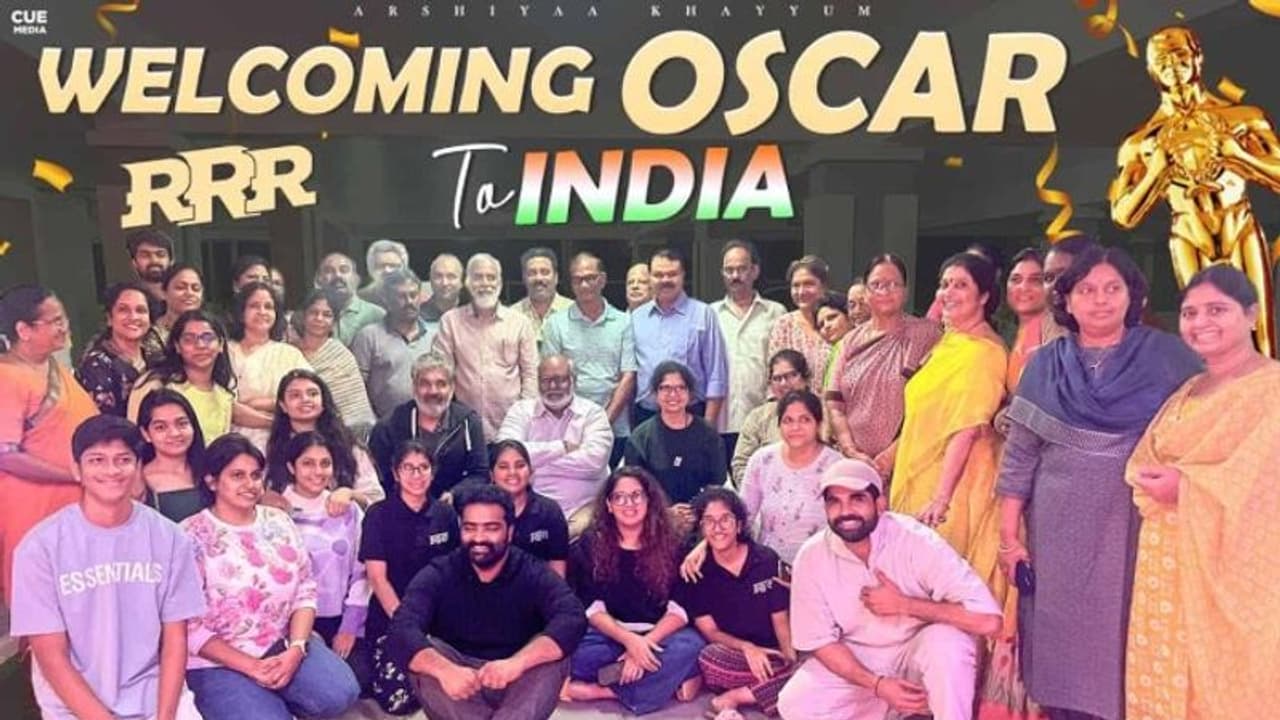 #RRR మూవీ కి ఆస్కార్ సెలబ్రేషన్స్ ప్రతీ తెలుగువారు జరుపుకుంటున్నారు. అందులో భాగంగానే ఈవెంట్ ని ముగించుకొని మూవీ టీం హైదరాబాద్ కి వచ్చినప్పుడు అభిమానులు బేగంపేట్ విమానాశ్రయం కి చేరుకొని ఘన స్వగతం పలికారు. ముందుగా జూనియర్ ఎన్టీఆర్ వచ్చాడు. ఆయన వస్తున్నట్టు అభిమానులకు ఎలాంటి సమాచారం లేదు. తెల్లవారు జామున 3 గంటలకు వచ్చాడు. అయినా కానీ అక్కడకి అశేషం గా అభిమానులు వేలాదిగా తరలివచ్చి ఎన్టీఆర్ కి గ్రాండ్ వెల్కమ్ చెప్పారు.