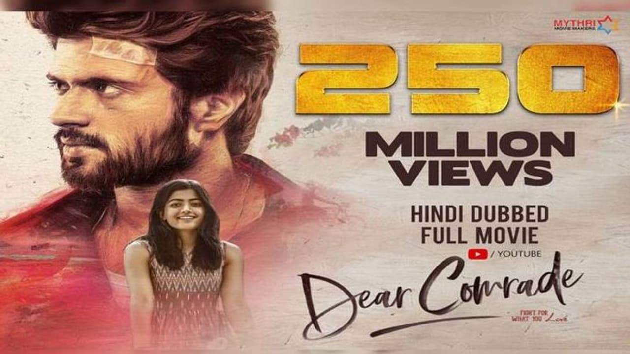 టాక్సీవాలా తర్వాత విజయ్ దేవరకొండ చాలా గ్యాప్ తీసుకుని చేసిన సినిమా డియర్ కామ్రేడ్. విజయ్ సినిమాలు అంటే ఎలా ఉంటాయో ప్రత్యేకంగా పరిచయం అవసరం లేదు. ఆయన సినిమాలకు ఫ్యాన్స్ కూడా అలాగే ఉంటారు. తొలిసారి తన ఇమేజ్ కు తానే పరీక్ష పెట్టుకున్నాడు విజయ్. పూర్తిగా ఎమోషనల్ కథను ఎంచుకున్నాడు విజయ్ దేవరకొండ. ఇది కాస్త సాహసం అని తెలిసినా కూడా ఎంచుకున్నాడు విజయ్. దాంతో ఎక్సపెక్టేషన్స్ పెరిగాయి. వాటిని అందుకోలేక పోయింది. అభిమానులను మెప్పించలేకపోయింది. అయితే ఇప్పుడీ సినిమా గురించి టాపిక్ ఎందుకూ అంటే...ఈ సినిమా హిందీ వెర్షన్ యూట్యూబ్లో సరికొత్త రికార్డులు క్రియేట్ చేస్తోంది.