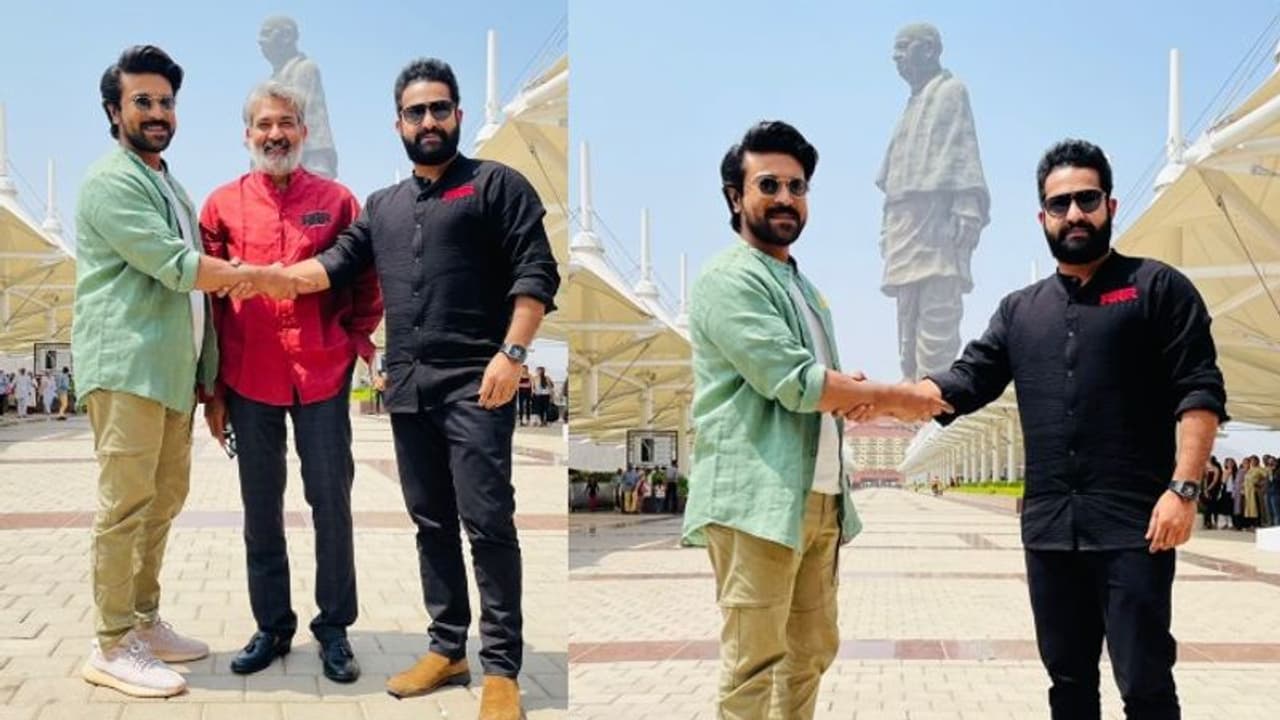 స్టాచ్యూ ఆఫ్ యూనిటీ (Statue Of Unity) వద్ద ఆర్ఆర్ఆర్ టీంకు సంబంధించిన పలు ఫొటోలను చిత్ర యూనిట్ అఫిషియల్ గా రిలీజ్ చేసింది. ఈ ఫొటోల్లో దర్శకధీరుడు జక్కన్న రెడ్ షర్ట్ లో ఎనర్జిటిక్ గా కనిపిస్తున్నారు. వీరు ముగ్గురు కలిసిన ఒక ఫొటోలో చూడవచ్చు. అలాగే ఎన్టీఆర్ (NTR), రామ్ చరణ్ (Ram Charan) స్టైలిష్ లుక్ లో ఆకట్టుకున్నారు. దోస్తీని తెలుపుతూ ఎన్టీఆర్, రామ్ చరణ్ తమ చేతులను గట్టిగా పట్టుకొని ఫొటోలకు ఫోజులిచ్చారు. రామ్ చరణ్ మరింత అట్రాక్టివ్ లుక్ ను సొంతం చేసుకున్నారు. డీవీవీ దానయ్య నిర్మించిన ఈ చిత్రాన్ని,రాజమౌళి డైరెక్ట్ చేశారు. అయితే స్టాచ్యూ ఆఫ్ యూనిటీ వద్ద ప్రమోషన్స్ నిర్వహిస్తున్న తొలిచిత్రంగా ఆర్ఆర్ఆర్ చరిత్రలో నిలిచిపోనుంది.