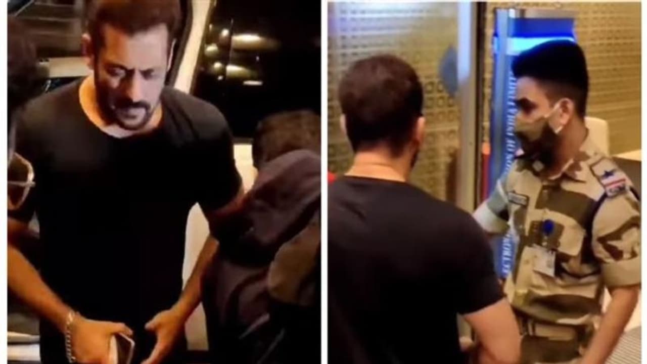 సినిమా షూటింగ్ కోసం బయలు దేరాడు సల్మాన్. రెడీ అయి తన సిబ్బందితో కలిసి ముంబయి ఎయిర్పోర్ట్ కి వెళ్లాడు. ఎయిర్పోర్ట్ చేరుకున్న సల్మాన్ మాస్క్ పెట్టుకుని లోపలికి బయలు దేరాడు. గేట్ దగ్గరకు వెళ్లగానే ఓ సెక్యూరిటీ ఆఫీసర్ సల్మాన్ ఖాన్ని ఆపాడు.