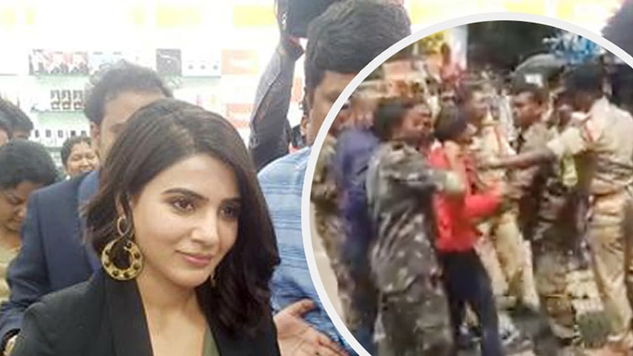 సోమవారం ఓ మొబైల్‌ షోరూం లాంఛ్‌ కోసం నటి సమంత విచ్చేసింది ఈ సందర్భంగా ఓ అభిమాని ఆమెను చూడాలన్న ఆత్రుతతో దూసుకొచ్చాడు గమనించిన పోలీసులు అతన్నిచితకబాదారు