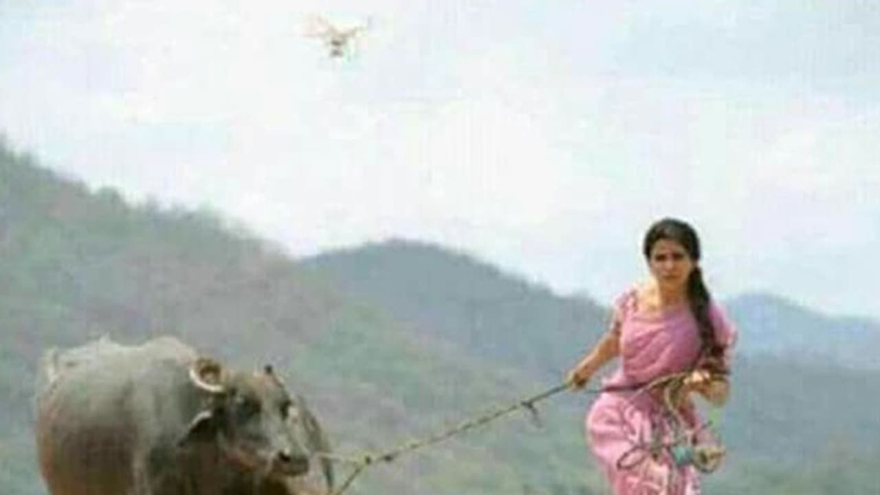 రంగస్థలం సినిమాలో రామ్ చరణ్ సరసన నటిస్తున్న సమంత సుకుమార్ దర్శకత్వంలో తెరకెక్కుతున్న మూవీ మార్చి 30న రిలీజ్ కానున్న రంగస్థలం 1985 మూవీలో గేదెలతో సమంత