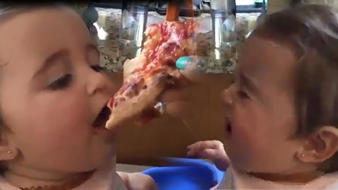 ఈ పాపకు పిజ్జా చూపించి ఏం తినిపించచారో చూడండి (వీడియో)