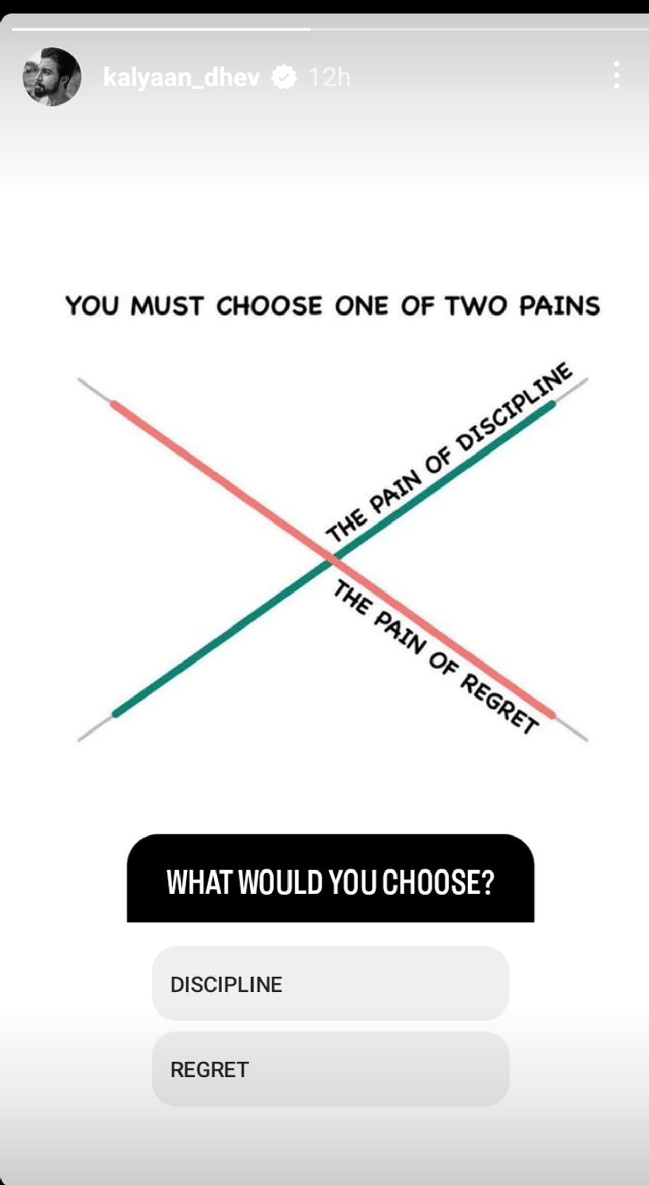 కళ్యాణ్ దేవ్ ఇంస్టాగ్రామ్ వేదిక తన మనసులోని మాటలు పంచుకుంటున్నారు.ఆయన వరుస పోస్ట్స్ కాకరేపుతున్నాయి. ఒకరి సమస్య గురించి మనకు తెలిసింది చాలా తక్కువ. కాబట్టి విషయం తెలియకుండా మాట్లాడకూడదు అని అర్థం వచ్చేలా ఒక పోస్ట్ పెట్టాడు. తాజాగా మరొక పోస్ట్ పెట్టారు. రెండు రకాల బాధలు ఉంటాయి. వాటిలో మనం ఒకటి ఎంచుకోవాల్సి ఉంటుందని అన్నారు. క్రమశిక్షణ వలన వచ్చే బాధ లేదా విచారం వలన వచ్చే బాధ ఉంటాయి. ఈ రెంటిలో ఒకటి ఎంచుకోవాలి. మీరు ఏది కోరుకుంటారని ఆయన ప్రశ్నించారు. శ్రీజాతో ఆయన విడిపోయిన నేపథ్యంలో ఆయన పోస్ట్స్ ప్రాధాన్యత సంతరించుకున్నాయి.