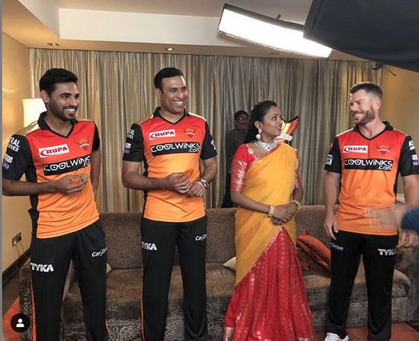 ఈ నెల 24న కోల్కతాతో సన్రైజర్స్ మొదటి మ్యాచ్ ఆడనుంది.అయితే ప్రమోషన్స్ లో భాగంగా యాడ్స్ లో క్రికెటర్స్ తో కలిసి సుమ నటించారు. వార్నర్ తో పాటు ఇండియన్ మాజీ సీనియర్ క్రికెటర్ లక్ష్మణ్, బౌలర్ భువనేశ్వర్ కూడా సుమతో కలిసి సరదాగా ఇలా నవ్వుకున్నారు.