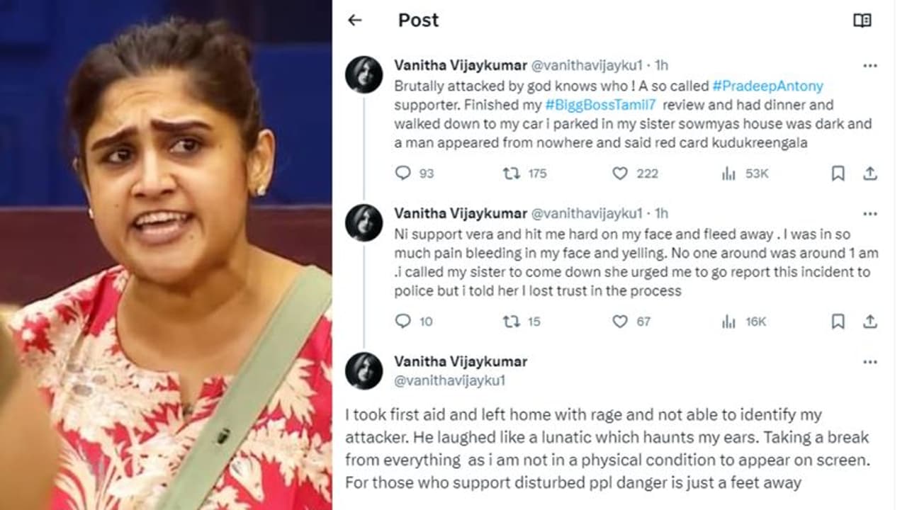 స్టూడియోకు దగ్గర్లో పార్క్ చేసిన తన కారు వద్దకు వెళుతుండగా గుర్తు తెలియని వ్యక్తి ఒకరు సడెన్ గా ఎదురొచ్చి వనితపై దాడి చేశాడు. దీంతో వనిత ముఖంపై గాయమైంది. ఈ విషయాన్ని వనిత సోషల్ మీడియాలో పంచుకుంది. తనపై ప్రదీప్ ఆంటొని సానుభూతిపరుడే దాడి చేశాడని ఆరోపిస్తోంది. ప్రదీప్ కు రెడ్ కార్డ్ ఇస్తావా అంటూ ఆగంతుకుడు తనపై దాడికి పాల్పడ్డాడని పేర్కొంది.