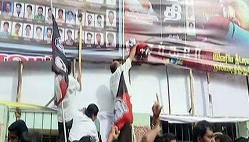 ప్తస్తుతానికి అన్నాడీఎంకే కార్యకర్తలు తమిళనాడు వ్యాప్తంగా ఒక్కటై.. థియేటర్ల మీద పడి ఫ్లెక్సీలు, బ్యానర్లు చించెయ్యడం మొదలుపెట్టారు. మదురై, కోయంబత్తూరుల్లో మొత్తం అన్నీ థియేటర్ల వద్ద ప్రత్యేక భద్రతను ఏర్పాటు చేయాల్సి వచ్చింది. తమ ‘ఉద్యమం’ ఉధృతం చేస్తామని కూడా కార్యకర్తలు హెచ్చరిస్తున్నారు. అయితే.. ఈ వివాదం ఎంతవరకు వెలుతుందో వేచి చూడాలి.