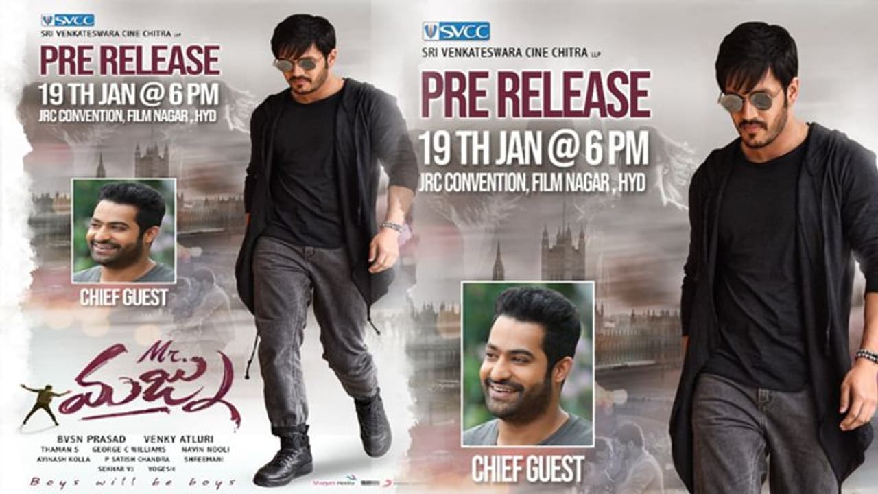 అయితే వేడుకకు జూనియర్ ఎన్టీఆర్ ప్రత్యేక అతిధిగా రాబోతున్నాడు. మొదటి నుంచి అఖిల్ స్టార్ హీరోల హెల్ప్ తీసుకుంటున్నాడు. మొదట్లో మహేష్ ని అఖిల్ సినిమాకు పిలువగా ఆ తరువాత హలో సినిమాకు మెగాస్టార్ చిరంజీవి సపోర్ట్ తీసుకున్నాడు. ప్రతిసారి స్టార్ హీరోల నుంచి ప్రమోషన్స్ చేస్తోన్న అఖిల్ హిట్ మాత్రం అందుకోవడం లేదు.