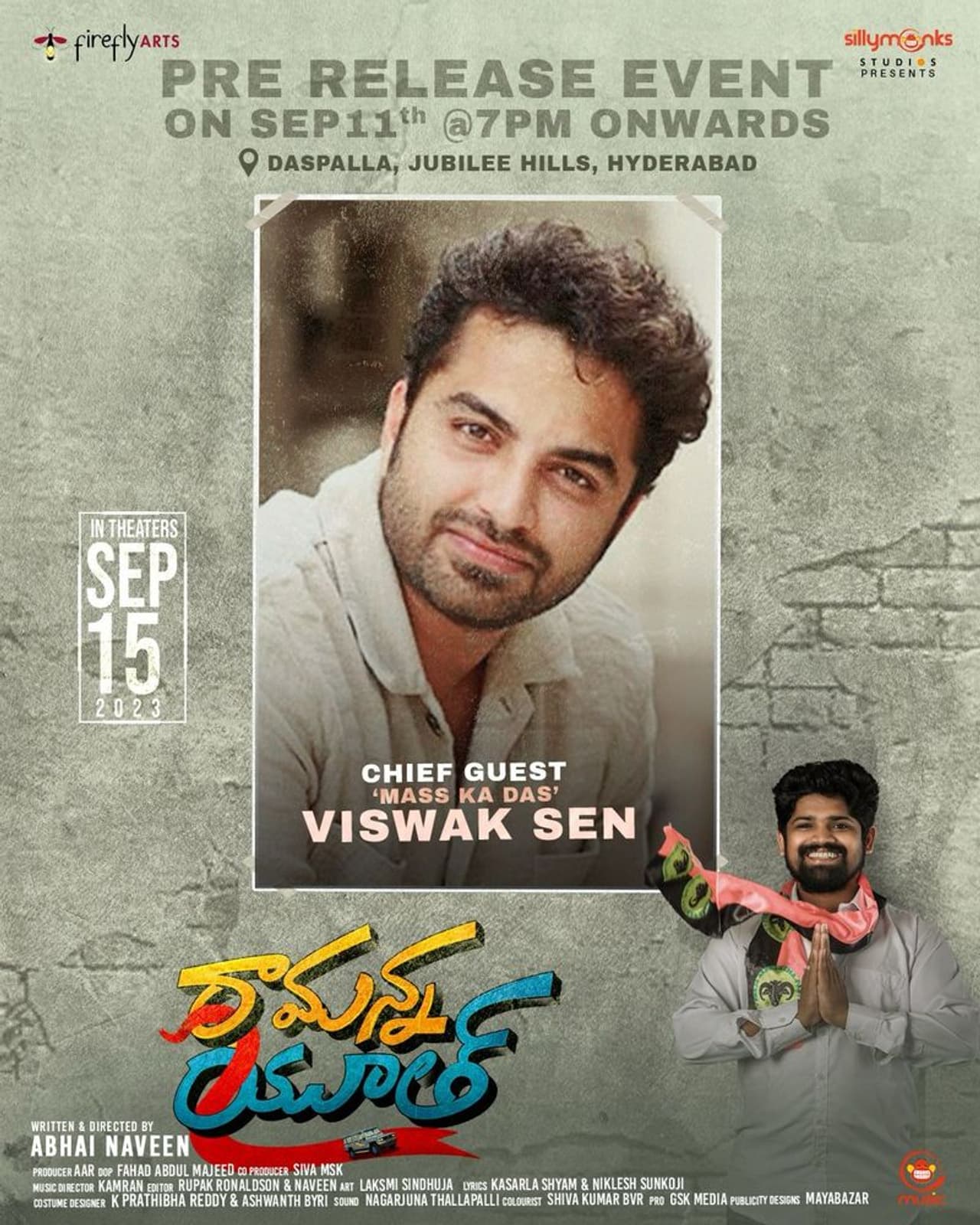 టాలెంటెడ్ యంగ్ యాక్టర్ అభయ్ నవీన్ హీరోగా నటిస్తూ దర్శకత్వం వహించిన సినిమా ‘రామన్న యూత్’. ఎంటర్ టైనింగ్ పొలిటికల్ డ్రామాగా తెరకెక్కుతోంది. ఈ చిత్రాన్ని ఫైర్ ఫ్లై ఆర్ట్స్ సంస్థ నిర్మించింది. ఈ నెల 15న విడుదల కానుంది. దీంతో 11న (సోమవారం) సినిమా ప్రీ రిలీజ్ ఈవెంట్ ను హైదరాబాద్ లో గ్రాండ్ గా నిర్వహించబోతున్నారు. ఈ ఫంక్షన్ కు మాస్ కా దాస్ విశ్వక్ సేన్ (Vishwak Sen) ముఖ్య అతిథిగా హాజరుకానున్నారు.