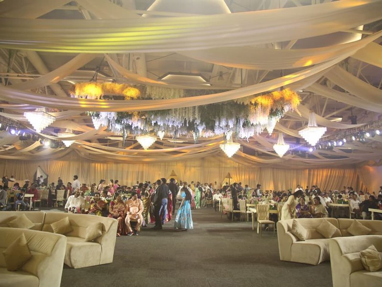 రిసెప్షన్ కోసం ఏర్పాటు చేసిన స్టేజీ చాలా ఆకర్షణీయంగా ఉంది. ఇంపోర్టెడ్ ఫ్లవర్స్ తో డెకరేషన్స్ అదిరిపోయాయి. హాల్ ప్రారంభం మొదలు స్టేజీ వరకు ఫ్లవర్ రీలింగ్ తో అందంగా మార్చారు. పూలవనంలో వేడుక జరగుతుందనే ఫీలింగ్ కలుగుతోంది. ఇందుకు సంబంధించిన ఫొటోలు నెట్టింట వైరల్ గా మారాయి. అలాగే అతిథుల కోసం స్పెషల్ వంటకాలు, తదితర ఏర్పాట్లలో ఏమాత్రం లోటు రాకుండా చూసుకుంటున్నారు.