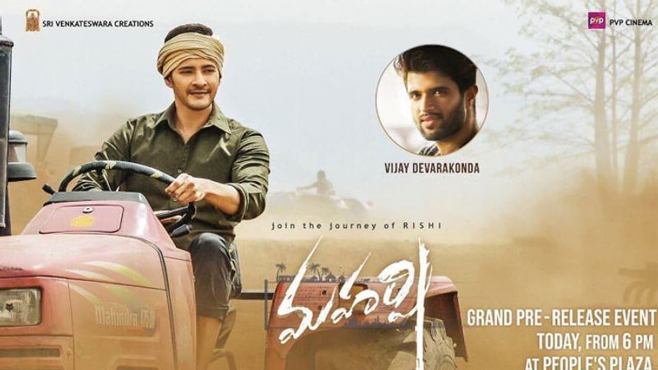 సూపర్ స్టార్ మహేష్ బాబు నటించిన 'మహర్షి' సినిమా మే 9న ప్రేక్షకుల ముందుకు రానుంది. దీంతో చిత్రబృందం ప్రమోషనల్ కార్యక్రమాలు షురూ చేసింది. ఇప్పటికే సినిమాలో పాటలను ఒక్కొక్కటిగా విడుదల చేశారు. ఈరోజు హైదరాబాద్ లో గ్రాండ్ గా ప్రీరిలీజ్ ఈవెంట్ నిర్వహించనున్నారు.