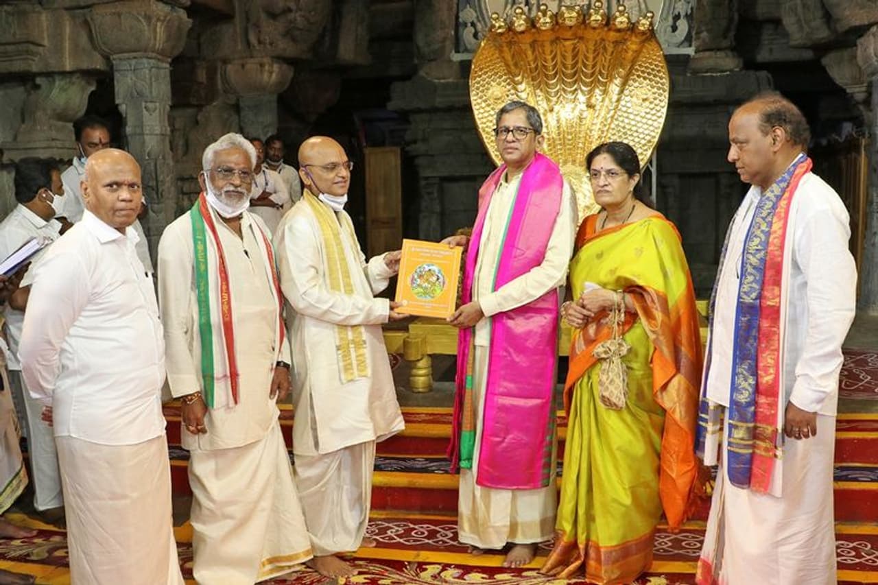 అంతకు ముందు మహా ద్వారం వద్దకు చేరుకున్న సీజేఐ ఎన్వీ రమణతో సహా ఆయన కుటుంబ సభ్యులకు టీటీడీ ఛైర్మన్ వైవీ సుబ్బారెడ్డి, ఎమ్మెల్యే భూమనకరుణాకర్ రెడ్డి, టీటీడీ ఈవో జవహర్ రెడ్డి, అడిషనల్ ఈవో శ్రీ ఏవీ ధర్మారెడ్డి లు స్వాగతం పలికారు. శాలువా కప్పి జస్టిస్ ఎన్వీ రమణ దంపతులను సత్కరించారు.