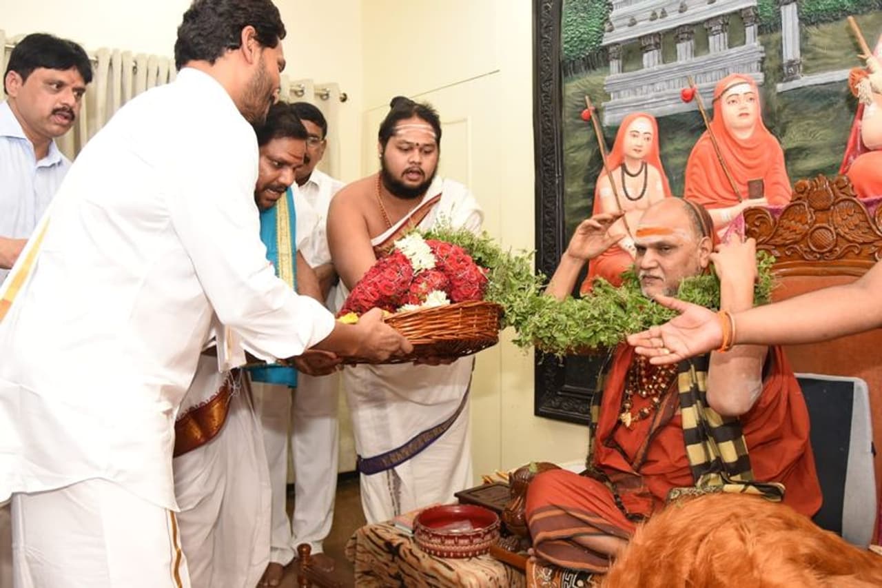 స్వరూపానందస్వామి ఆశీస్సులు పొందిన జగన్ (ఫోటోలు)