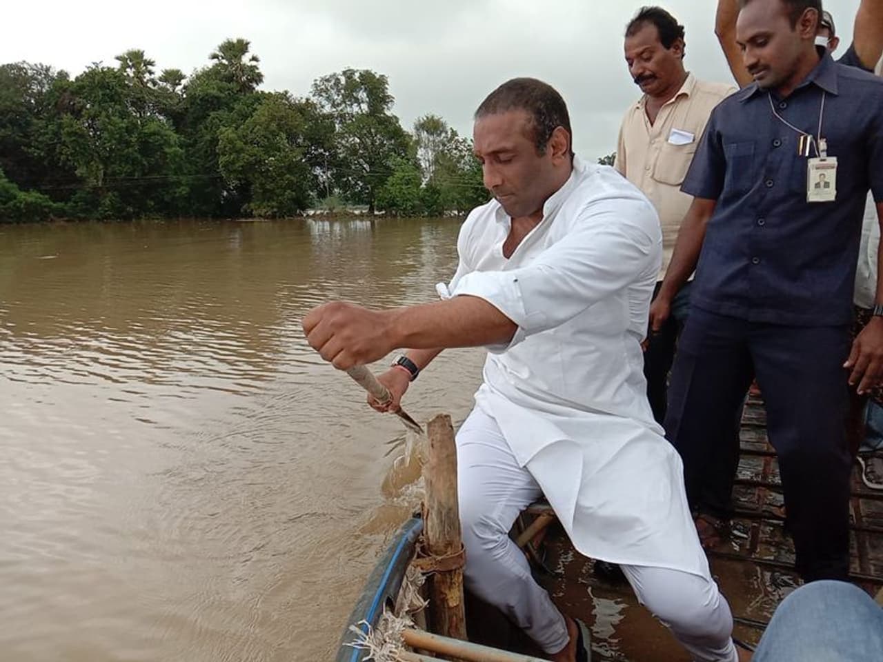 వరద బాధితుల కోసం... ప్రాణాలకు తెగించి నాటుపడవ నడిపిన మంత్రి