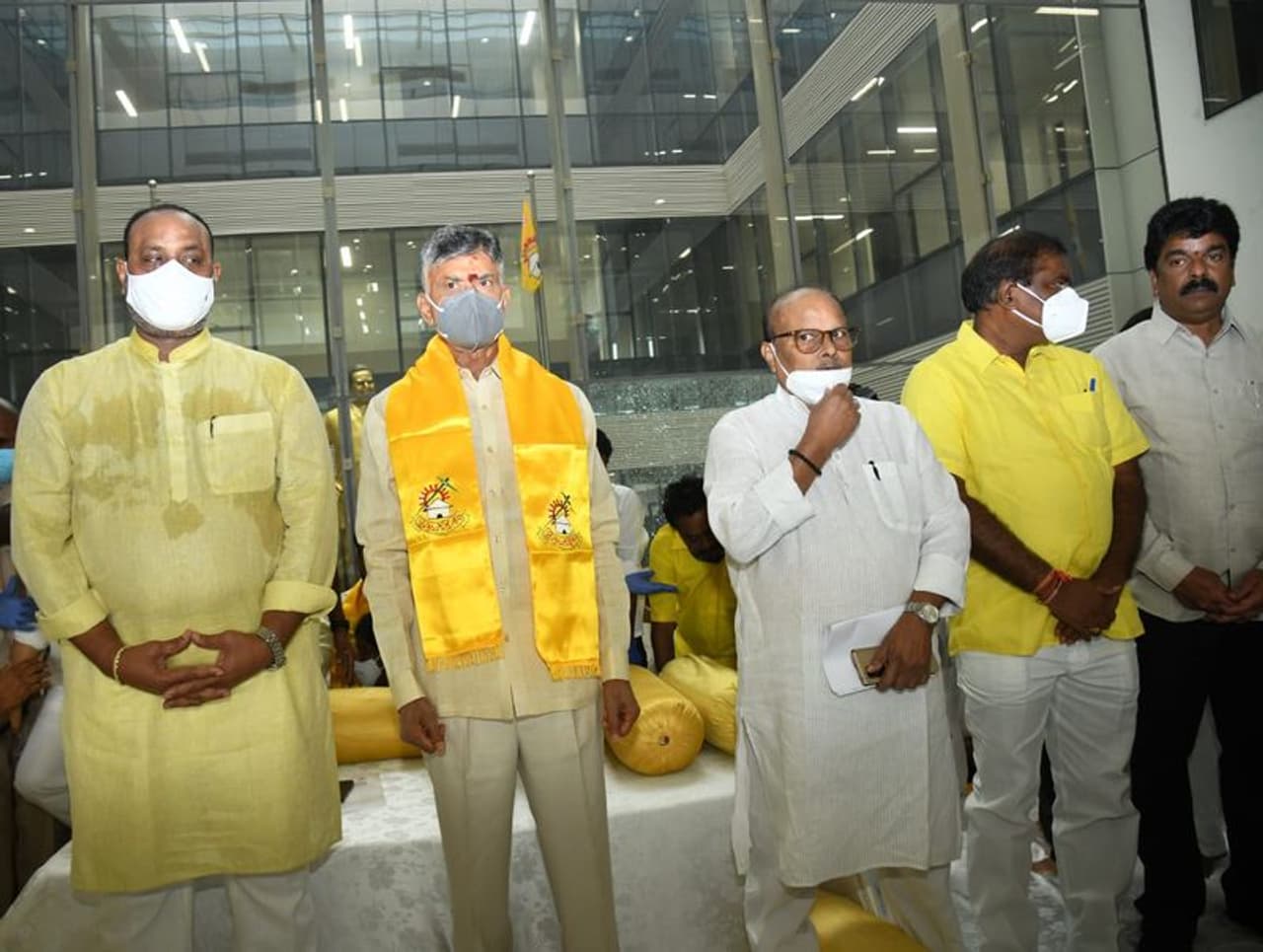 అమరావతి: తెలుగుదేశం పార్టీ జాతీయ కార్యాలయంపై దాడికి నిరసనగా ఆ పార్టీ అధినేత చంద్రబాబు నాయుడు చేపట్టిన దీక్ష గురువారం ఉదయం ప్రారంభమైంది. పగిలిన అద్దాలు, ధ్వంసమైన ఫర్నిచర్ మధ్యలోనే వేదికను ఏర్పాటు చేయగా వాటి మధ్యే చంద్రబాబు కూర్చున్నారు. ప్రభుత్వ ఉగ్రవాదంపై పోరు పేరుతో పార్టీ కార్యాలయంలో ప్రారంభమైన ఈ దీక్ష 36 గంటలు కొనసాగనుంది.