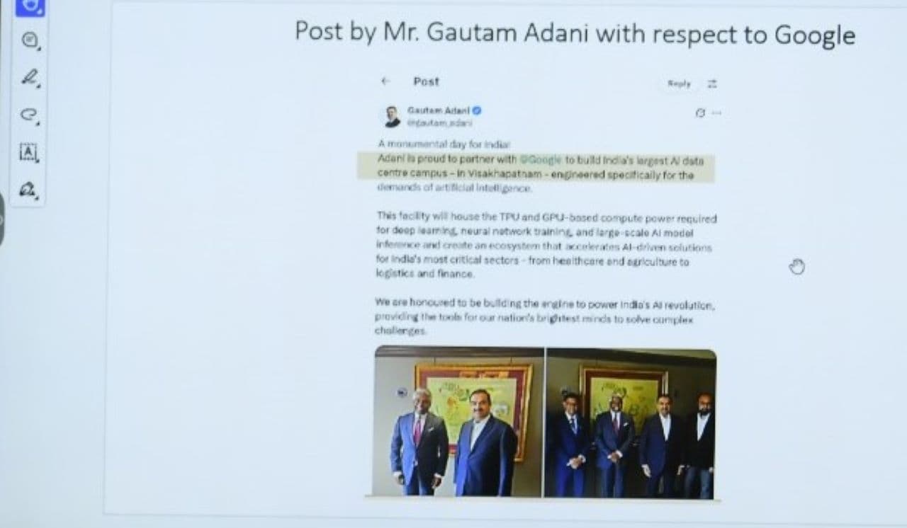 ఈ అదానీ డేటా సెంటర్ ప్రాజెక్ట్ కు కొనసాగింపే గూగుల్ డేటా సెంటర్ అని... ఇందులో కూటమి ప్రభుత్వం చేసిందేమీ లేదన్నారు. గతంలో చేసుకున్న ఒప్పందం ప్రకారం అదానీ గ్రూప్ రూ.87 వేల కోట్ల పెట్టుబడులు పెడుతోందని... ఈ సంస్థకు చెందిన కంపెనీలే గూగుల్ డేటా సెంటర్ ను నిర్మించనున్నాయని జగన్ తెలిపారు. అదానీ, గూగుల్ కు మధ్య మంచి వ్యాపార సంబంధాలున్నాయి... అందువల్లే గూగుల్ వైజాగ్ కు వస్తోందన్నారు వైఎస్ జగన్.