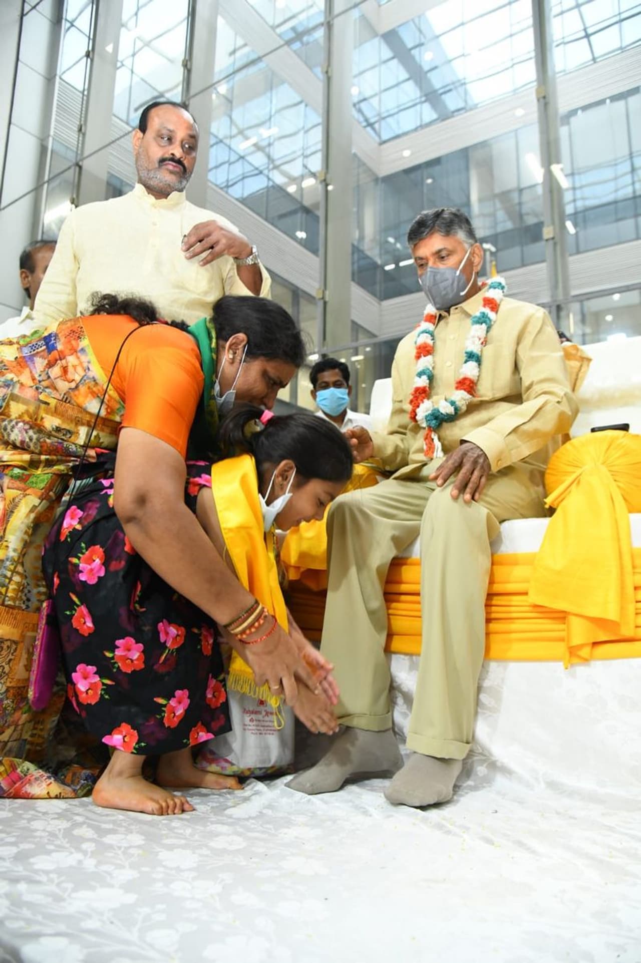 అమరావతి: తెలుగుదేశం పార్టీ జాతీయ కార్యాలయంపై దాడికి నిరసనగా ఆ పార్టీ అధినేత చంద్రబాబు నాయుడు చేపట్టిన దీక్షకు దివ్యాంగులు సంఘీభావం తెలిపారు. వైసిపి శ్రేణుల దాడిలో ధ్వంసమైన మంగళగిరి పార్టీ ఆఫీస్ లో రెండో రోజు దీక్ష కొనసాగిస్తున్న చంద్రబాబును కలిసారు దివ్యాంగులు. ఎంతటి కష్టసమయంలో అయినా టిడిపికి అండగా ఉంటామని దివ్యాంగులు స్పష్టం చేసారు. ప్రభుత్వ ఉగ్రవాదంపై పోరు పేరు సాగుతున్న చంద్రబాబు దీక్ష రేపటితో(శనివారంతో) ముగియనుంది.