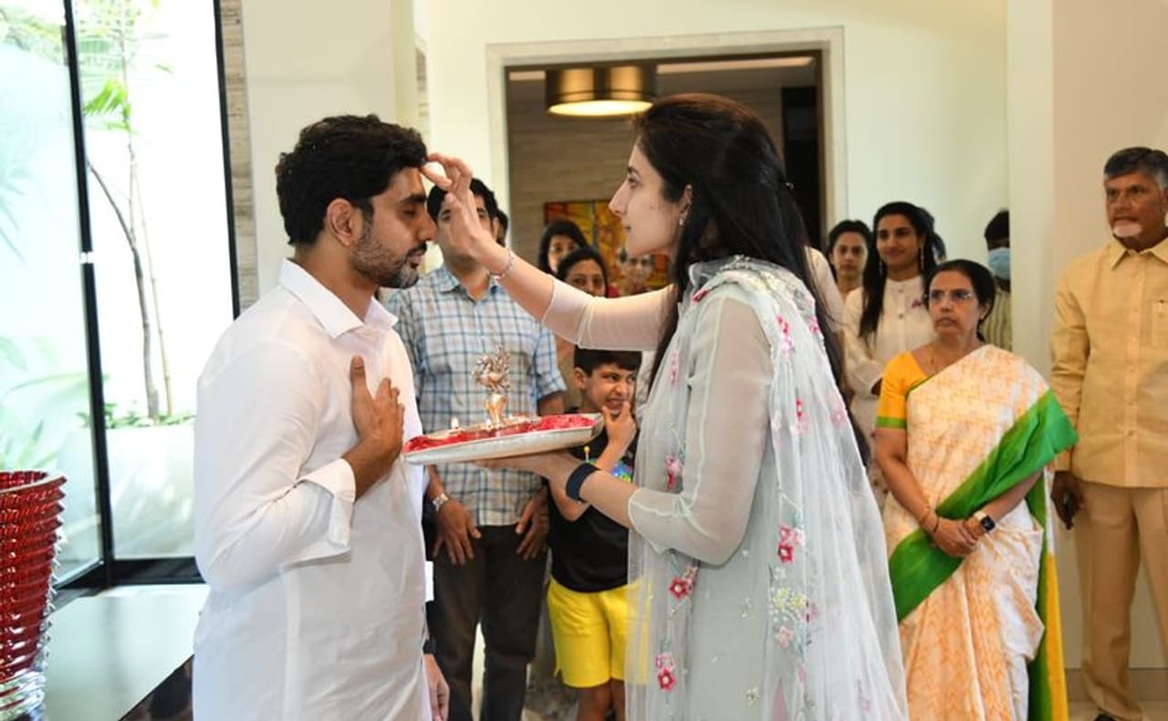 పాదయాత్ర కోసం బయలుదేరిన లోకేష్.. తిలకం దిద్దిన బ్రాహ్మణి.. తల్లిదండ్రుల ఆశీస్సులు..