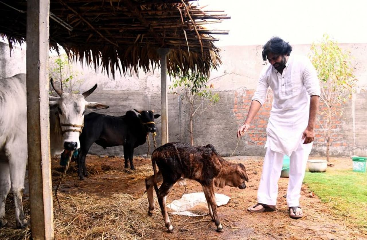 అమరావతిలో పార్టీ నాయకులతో చర్చలు జరుపుతున్న పవన్ విరామ సమయంలో గోషాలలో ఇలా గడిపారు. అలాగే తనను చూడటానికి వచ్చిన అభిమానులను కూడా పవన్ ప్రత్యేకంగా కలుసుకొని వారి సమస్యలను తెలుసుకున్నారు.