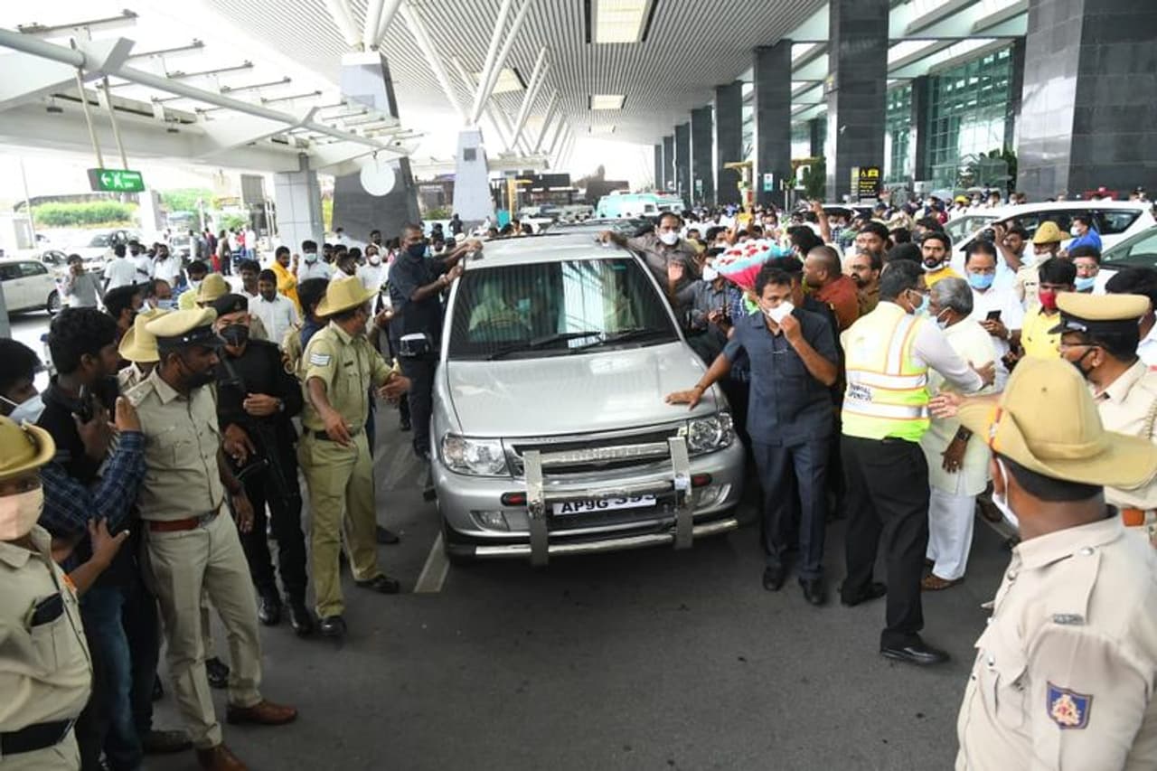 బెంగళూరు విమానాశ్రయంలో చంద్రబాబు... ఘనస్వాగతం పలికిన టిడిపి శ్రేణులు (ఫోటోలు)